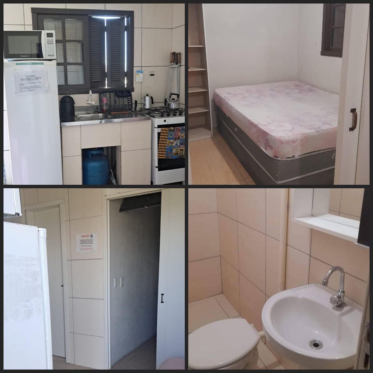Duplex in the new district of Tramandaí, next to the platform, 4 blocks from the beach, a quiet and well located place, close to markets and restaurants. With 1 en-suite with a double bed. Living room with smart TV, sofa bed for 1 person and 1 toilet. Full kitchen, with utensils, stove, barbecue and electric kettle. Service area with washing machine. It has 1 parking space. Bed linen, towels and iron are available. Available 1 fan.