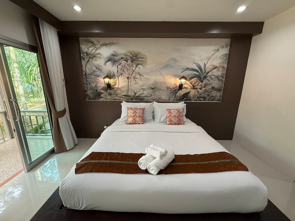 ที่พักที่เงียบสงบ เหมาะกับการพักผ่อน บรรยากาศเป็นธรรมชาติ สีเขียวสบายตา พร้อมสระน้ำภายในรีสอร์ต