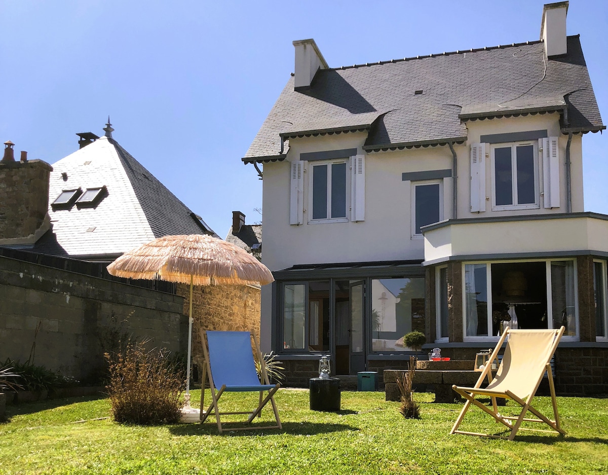 Our stone fisherman's house, ideal choice for anyone who wants to enjoy a dose of peace and quiet combined with a great location, is renovated and decorated with lots of love. It is located on the front line in front of the bay of Paimpol, south-facing, and enjoys an exceptional setting and breathtaking views… with direct and private access to the sea and the beach at the end of the garden… A dream to walk from the house along the coast or on the GR 34 … Tandem kayak