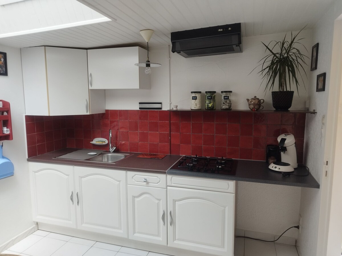 Charming townhouse completely renovated, with south-facing terrace and walled garden, quiet in a small pedestrian cul-de-sac. A stone's throw from the train station (Paris Montparnasse in 2 hours 15 minutes) and 10 minutes by car from the first beach. Ideal for a work stopover or a relaxing stay, you can enjoy a peaceful environment while remaining close to the center and transport. The secure courtyard allows you to store your bikes (rental at the station) with peace of mind 🚲