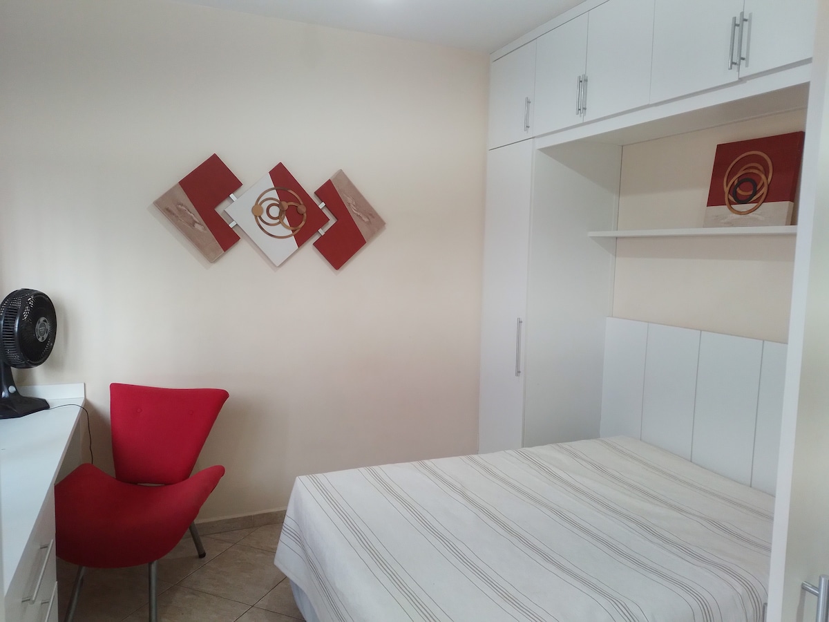 Get the whole family to this great place, a cozy and spacious apartment. With capacity for up to 5 people (02 sofas, 01 double bed, 03 single beds, 02 rooms one being a suite, service area, full kitchen, garage for 01 car, 01 bathroom and TV.