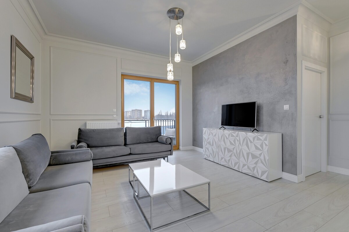 Blue & Fun Riverside Apartment with Gym & Sauna