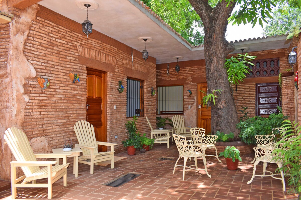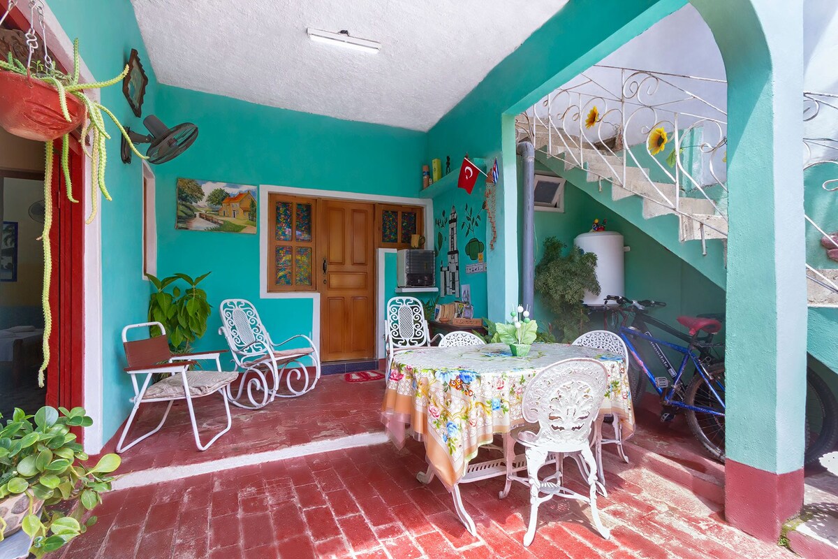 Casa Colonial rebuilt in 1925 located 5 minutes from the heart of the city's historic downtown and less than 200 meters from the modern downtown. We wash 2 bedrooms overlooking the inner courtyard (bedroom 1 and bedroom 2, another listing) , well ventilated and with independent bathroom. We offer breakfast services, snacks, laundry, wifi and taxi. We do everything we can for you to enjoy your vacation and at the same time know the life of the Cuban family.
