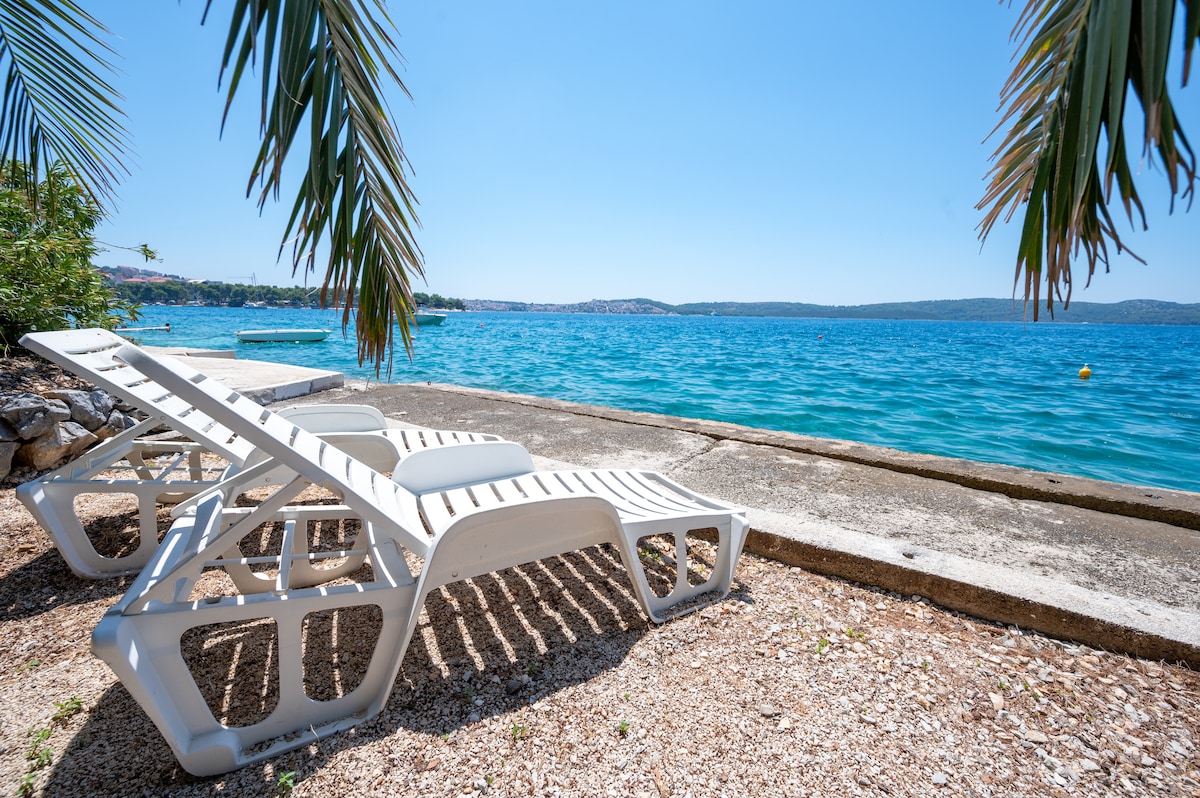 Seafront, top floor with amazing view. Situated between Split, the capital city of the Dalmatia Coast on one side and a beautiful resort of Trogir on the other side. It boasts a peaceful but convenient location, short bus drive to Split and Trogir.