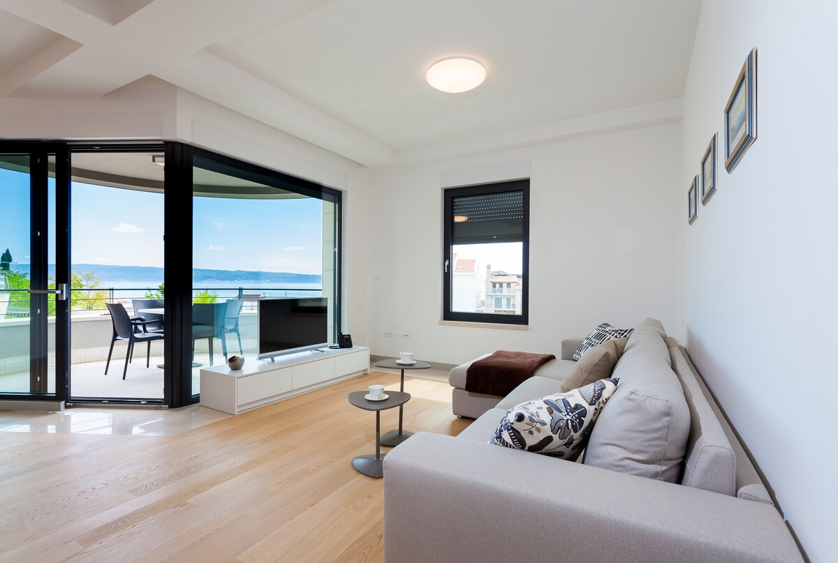 Welcome to our lovely 3-star rated apartments directly at the adriatic sea! The apartmenthouse is located next to the beach and has a direct access to the sea. Provided with a great panoramic view, you can overlook the whole beach. The sea is clear and refreshing and we offer sunbeds and sunumbrellas for our guests on the beach. It's an ideal place for relaxation, swimming and enjoying your vacation. The Apartment is 38 sqm large, suitable for 2 persons with 1 child.