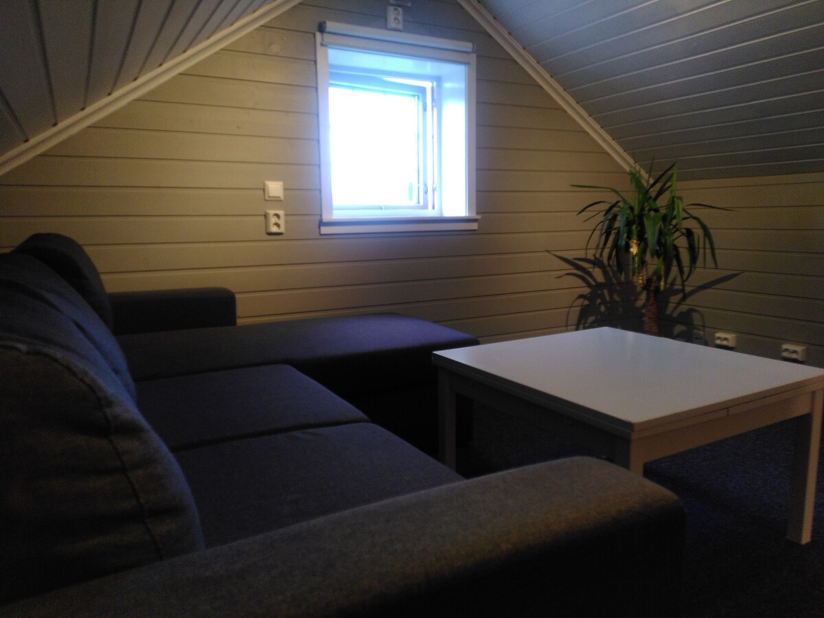 Annex to main house, studio With 1 double bed and 1 single bed (extra bed available). Kitchen equipped with oven, Cooking top, microvawe, toaster, hot water boiler, pots and pans,kitchenary.( Check the Facilities section for more) Close to Bus stop, bus every 20 minute, Close to shopping. 5 minutes drive from the airport. A fantastic stop for Your Aurora or Midnight Sun experiance.