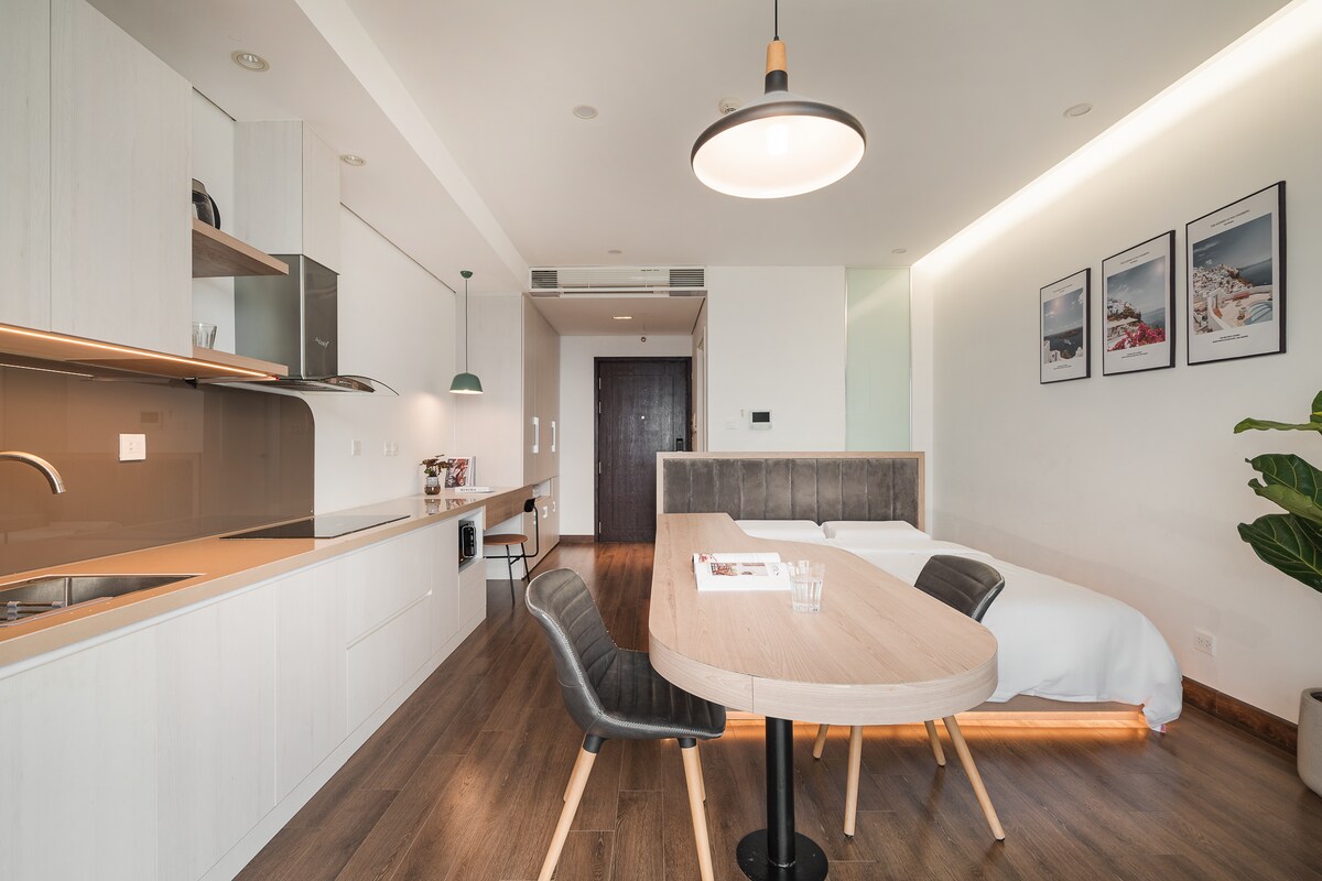- This is a chain of modern apartments located in Hanoi's luxurious apartment complexes. Vinhomes D'Capitale one of the best place to live, each apartment is tastefully decorated, sparkling clean and has a great city view, lake view from the best floors. We offer perfect accommodation for couples, families or single travelers. - This brand new studio has 1 queen-sized bed, 1 private bathroom, living-room with comfy sofa for you relaxing with a smart TV