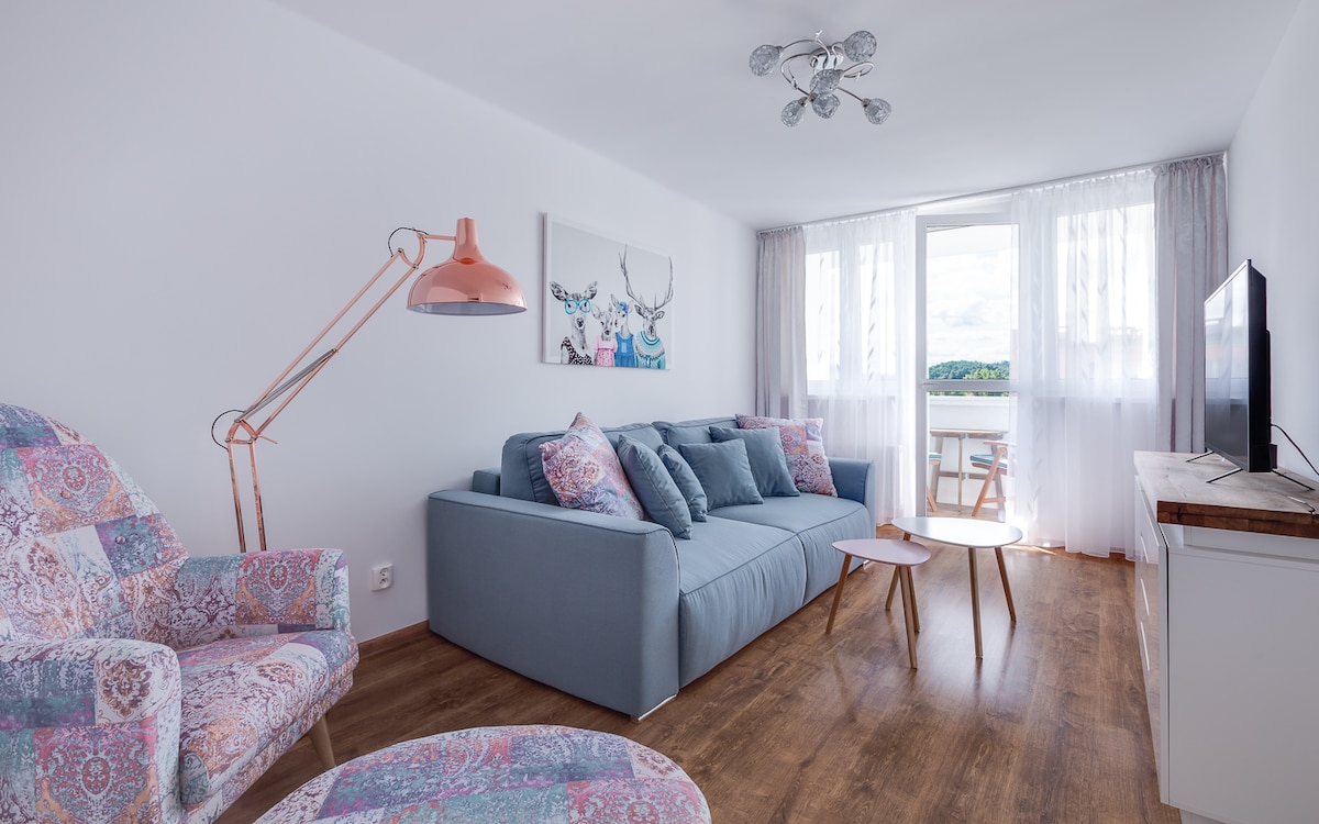 A romantic apartment with views of the pristine nature of the Krkonoše Mountains will get you with its stylish and practical interior. For wellness lovers, it offers a sauna and a very pleasant relaxation area just a few steps from the sofa in the living room. Let yourself be awakened by the Krkonoše sun and fall asleep in the endless silence that this location offers. You can reach the longest ski slope in the country by car in less than a quarter of an hour. Cross-country ski trails can be found all over the area. Lovers of hiking or cycling will also find something for themselves.