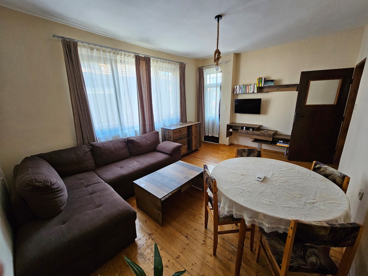 Modern and cozy apartment in the center of Burgas, just 5 minutes (350 m) from the beach. Features a stylish bedroom with soft lighting, a comfy sofa, smart TV, air conditioning, and fast Wi-Fi. The kitchen is fully equipped with a stove, microwave, fridge, and dining area. The bathroom is fresh and functional. Apartment located near restaurants, shops, and transport — perfect for a beach getaway, romantic stay, or working remotely.
