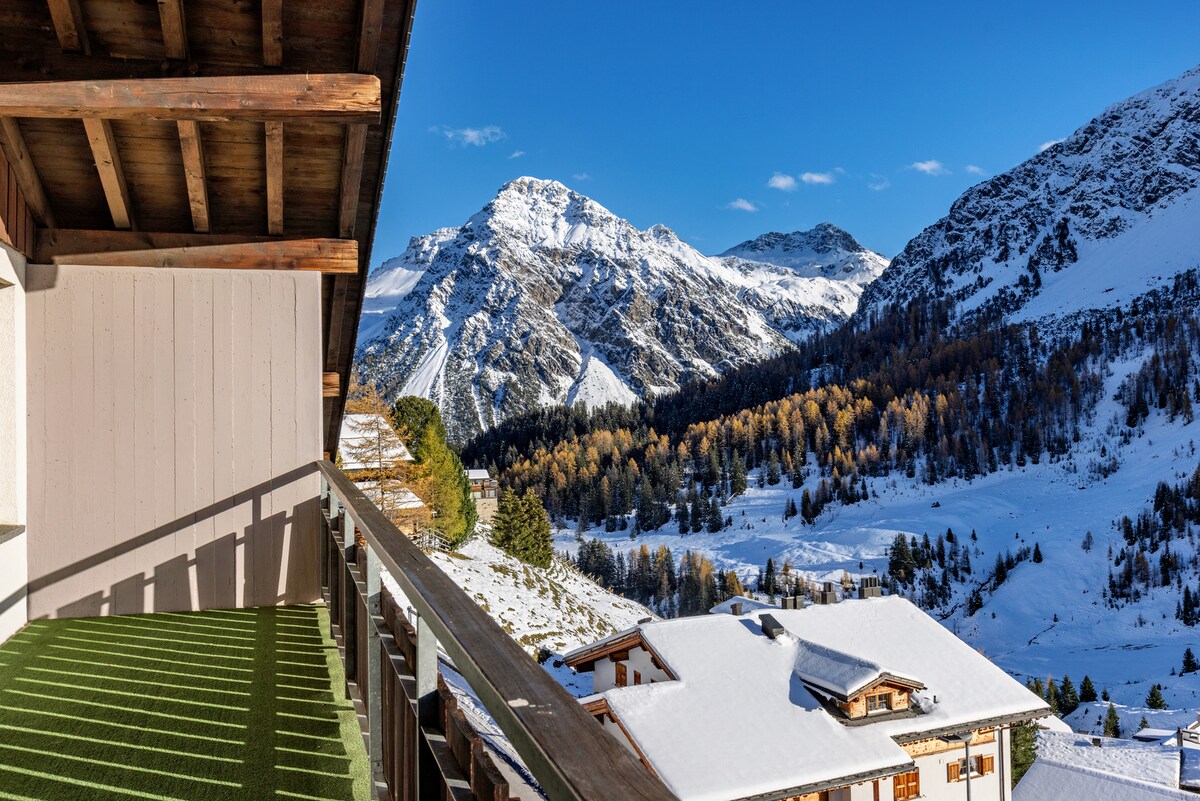 Stilvolle und ruhige wie auch sehr gemütliche Studiowohnung an zentrale Lage mit Aussicht. 4 min. zu Fuss zur Talstation und dem Dorfplatz im Zentrum. Die Wohnung liegt 1750m.ü. Meer Mit dem Zug über Chur (1h) sehr gut erreichbar (5min zu Fuß von Bahnhof). Ca. 3min zu Fuss zum Obersee und zum Untersee (Badesee mit schöner Holzbadi). Parkplatz im Haus evtl. auf Anfrage vorhanden. Es gibt auch einen öffentlichen Parkplatz und ein Parkhaus in der Nähe.