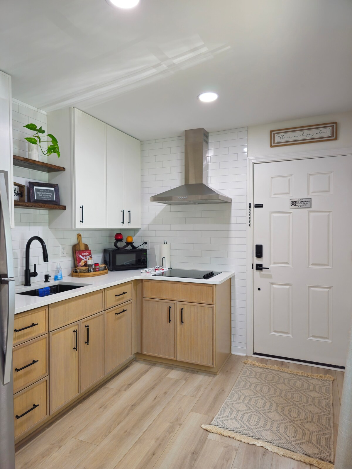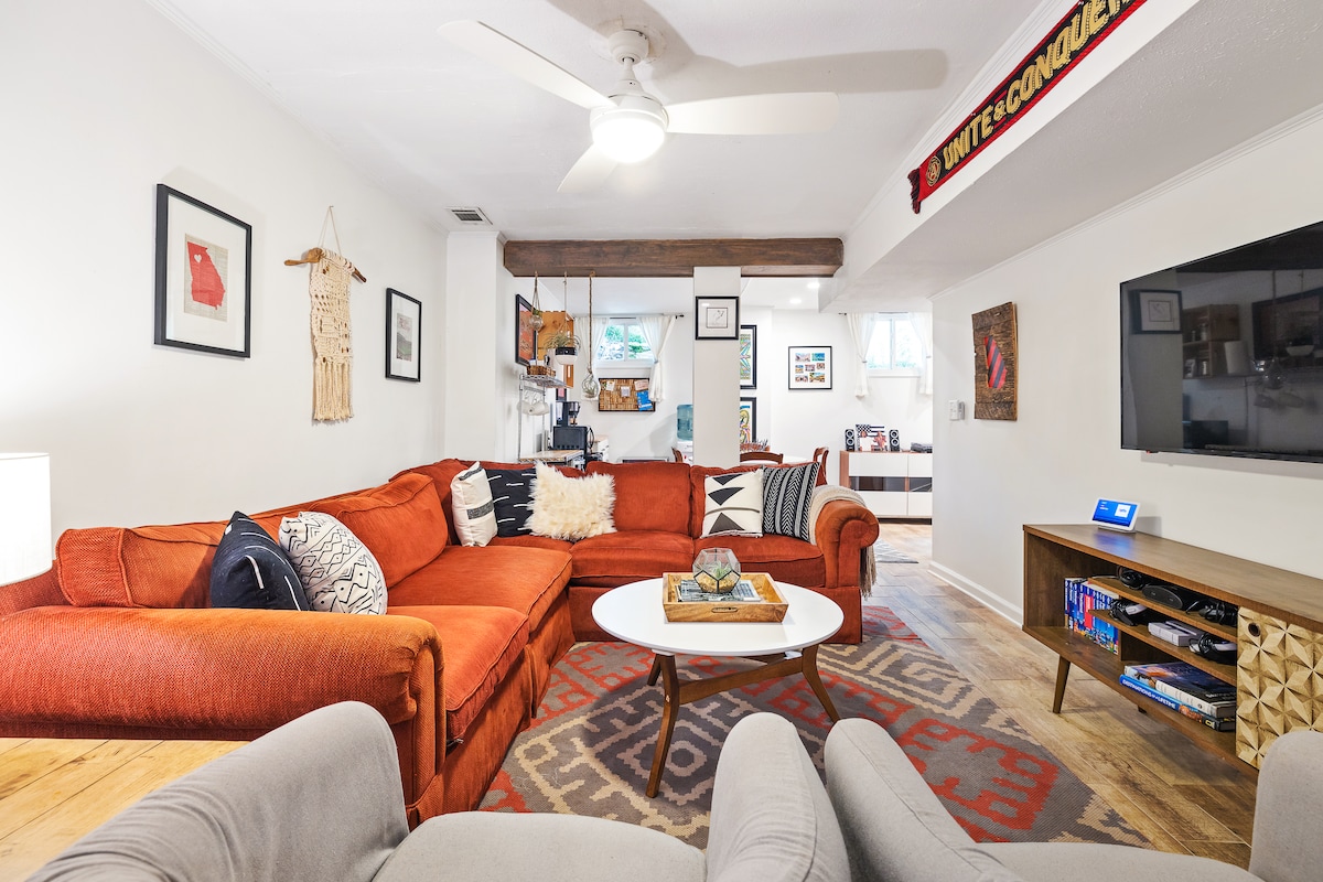This wonderful cozy studio is super private, with its own entrance right on the side of the house. Plus, it comes with a full kitchen and bathroom. It’s a peaceful, private space with a well-equipped kitchen featuring a big refrigerator, a queen-size bed, a 45” smart TV, a private entrance, an outdoor deck that leads to the backyard, and parking right next to the unit. We’re just a 30-minute drive to downtown Atlanta, Mercedes-Benz Stadium, the GA Aquarium, and 15 minutes to Gas South Arena.
