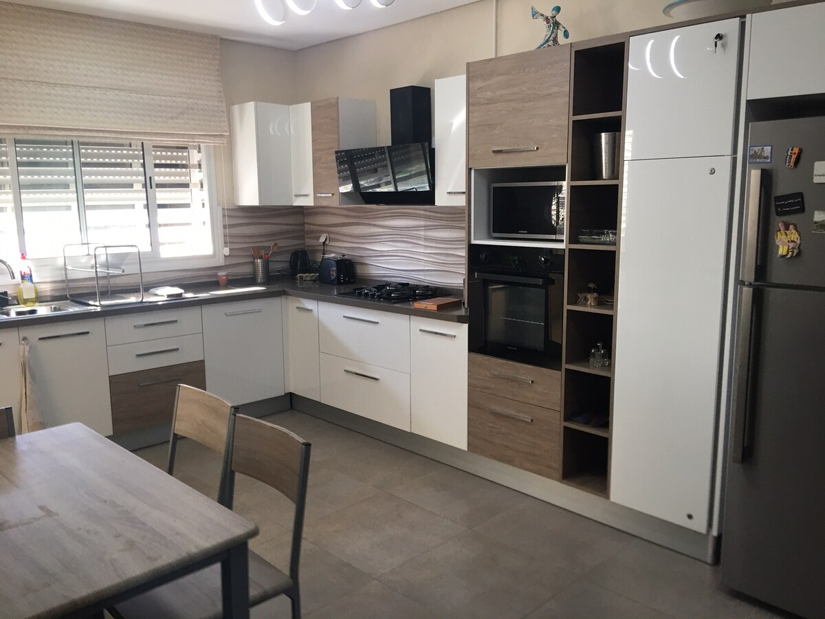 Le duplex est sur 2 étages, dans un quartier résidentiel de La Marsa ville. Il est luxueux, lumineux, avec 2 cuisines, 2 chambres avec balcon et 2 salles de bains et une terrasse, Il n’est adapté pour un couple avec enfant de moins de 5 ans. À 15 minutes de l’aéroport de Tunis , 10 minutes à pied de la plage ou à 3 minutes en voiture. Vous pourrez vous promener dans les magasins et les restaurants situés à proximité.5 min en voiture du village de Sidi Bou Said et des sites archéologiques.