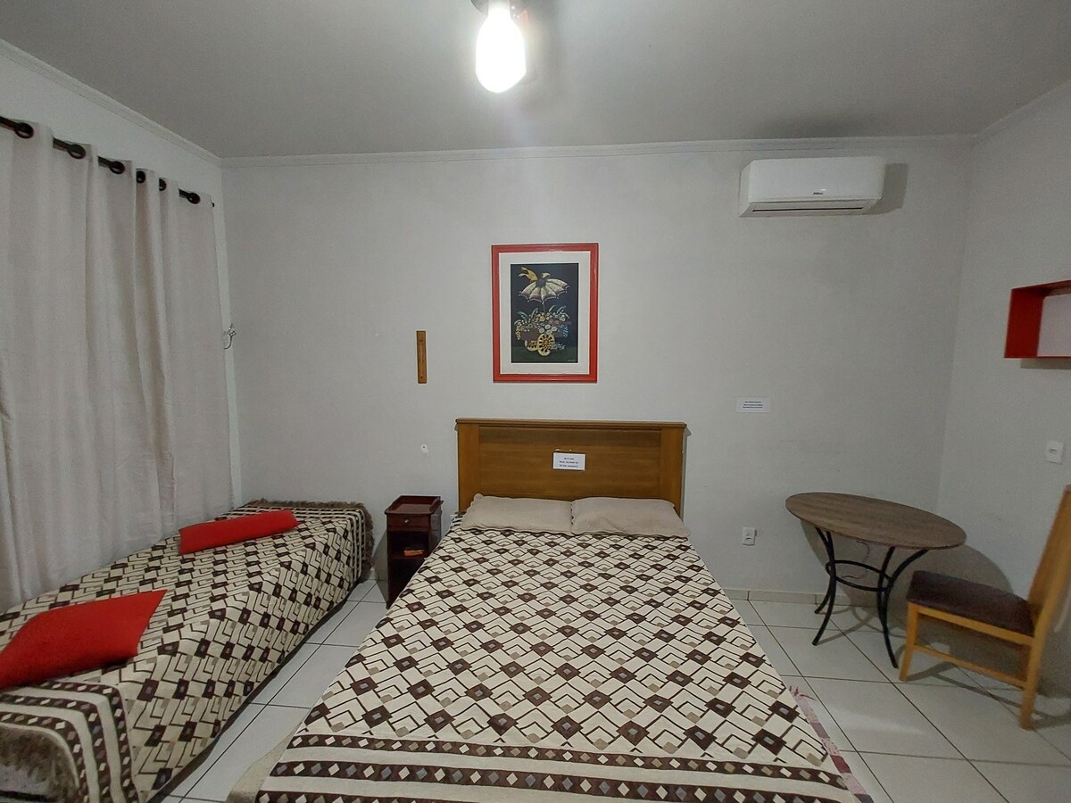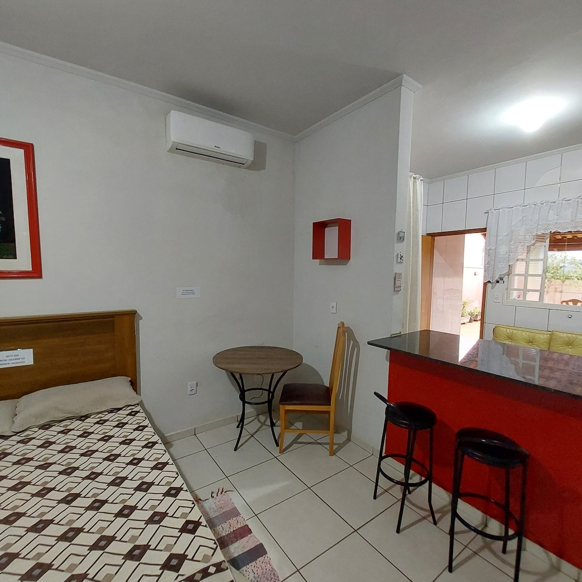 A studio apartment in Olímpia, in the Urbana area, close to the Termas dos Laranjais water park. The house has: 1 Bedroom (suite), with a TV room, with refrigerator and microwave. It does not have a kitchen. WiFi 500; TV 42', Ceiling fan and Ar Condicionado. The suite holds up to 4 people. Create your budget for 2 or more people. The suite is private, but the garage is shared.