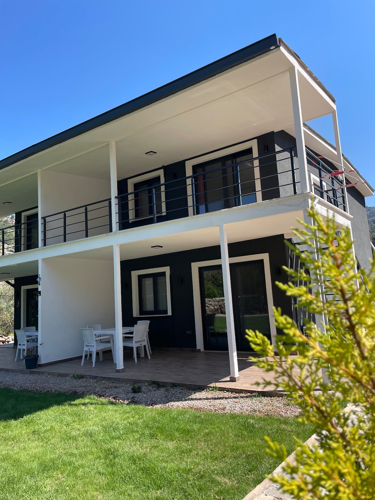 You can relax as a family in this peaceful accommodation. Our 1+1 apartments are new and spacious. The apartments have a TV, washing machine, air conditioner, refrigerator, coffee machine and all kitchen utensils. It is located 5-10 minutes by car from many bays and has a very large balcony and garden. Barbecues and samovars can be made in our garden. It provides a very comfortable accommodation for families with children. It gives great peace with its mountain view. We await you for a holiday in touch with pure nature