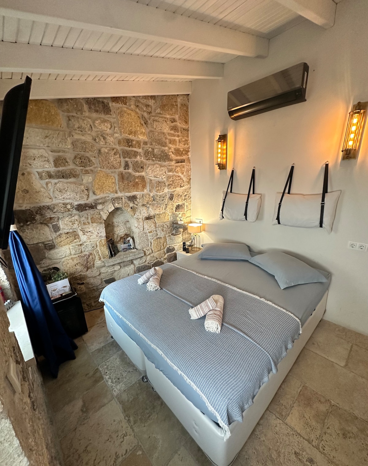Welcome to Eski Foça - the small stone house is located in the middle of the old town by the small harbor and impresses with its central location to the sea (150 m), cafes... The stone house (built in 1877) was planned and restored with a lot of love for detail. A double bed (160 cm), TV, air conditioning with virus filter and a private bathroom complete the room. We can also offer you boat trips and airport transfers for an extra charge. Please note that the garden is shared with me.