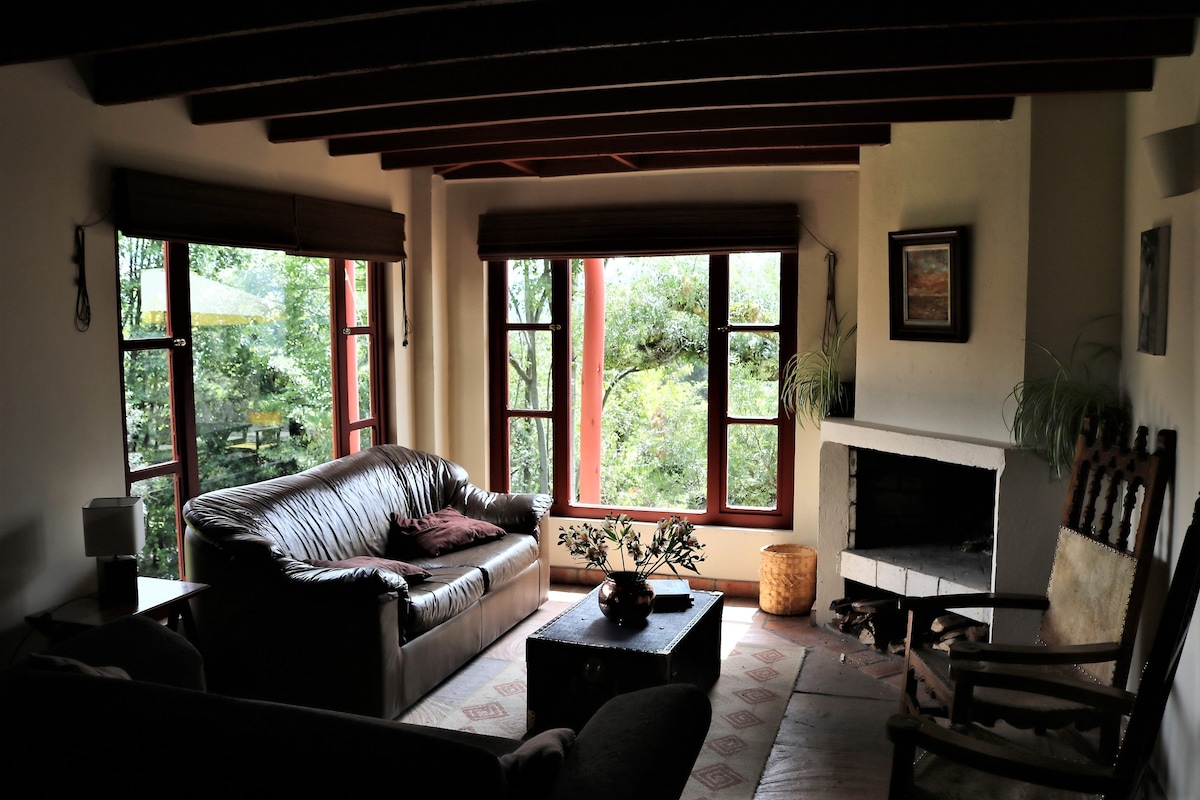 Suite Cabaña Cantodeagua: Refugio Único en Villa de Leyva! Descubre nuestro Proyecto familiar diseñado por Iván y Carmen, arquitectos y bellamente decorado por Tere. En un tranquilo bosque urbano, un ambiente luminoso y acogedor, ideal para parejas y un niño. Frente a un hermoso lago, disfrutarás del canto de los pájaros, croar de las ranas y la serenidad de la naturaleza. Parqueadero al lado, internet. La cabaña a solo unos pasos de la plaza principal y con la cercanía de la magia del pueblo.