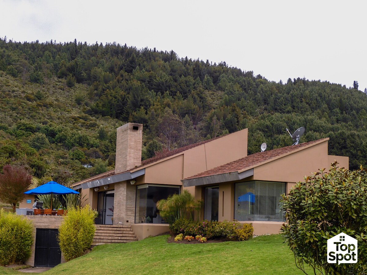Vista D' Amore, 60 km from Bogotá, has a spectacular view of the Tominé dam. It is designed with lots of light and space to enjoy and relax. The rooms each have their own bathroom for privacy. It has Wi-Fi, a dishwasher, a washing machine, and a clothes dryer. The house is quiet with double glazing. The rooms have access to a balcony or terrace. In the evenings, share the space around the fireplace.