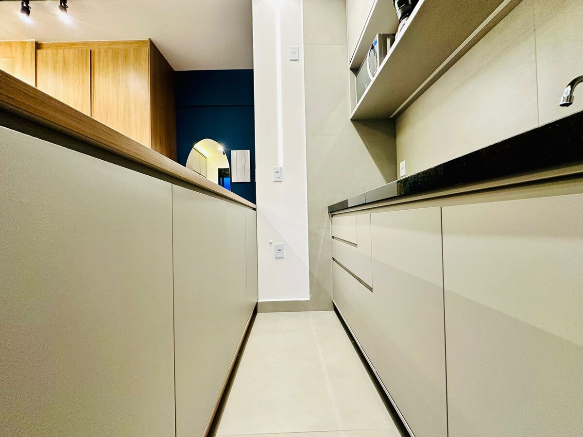 A space designed for those who value design, comfort and a sophisticated urban experience. The Sunset Loft combines contemporary architecture with a welcoming and functional atmosphere. The project integrates environments intelligently, with bespoke joinery, planned lighting and an elegant division between living room and bedroom, ensuring privacy without losing amplitude. Enjoy an elegant experience in this well-located place.