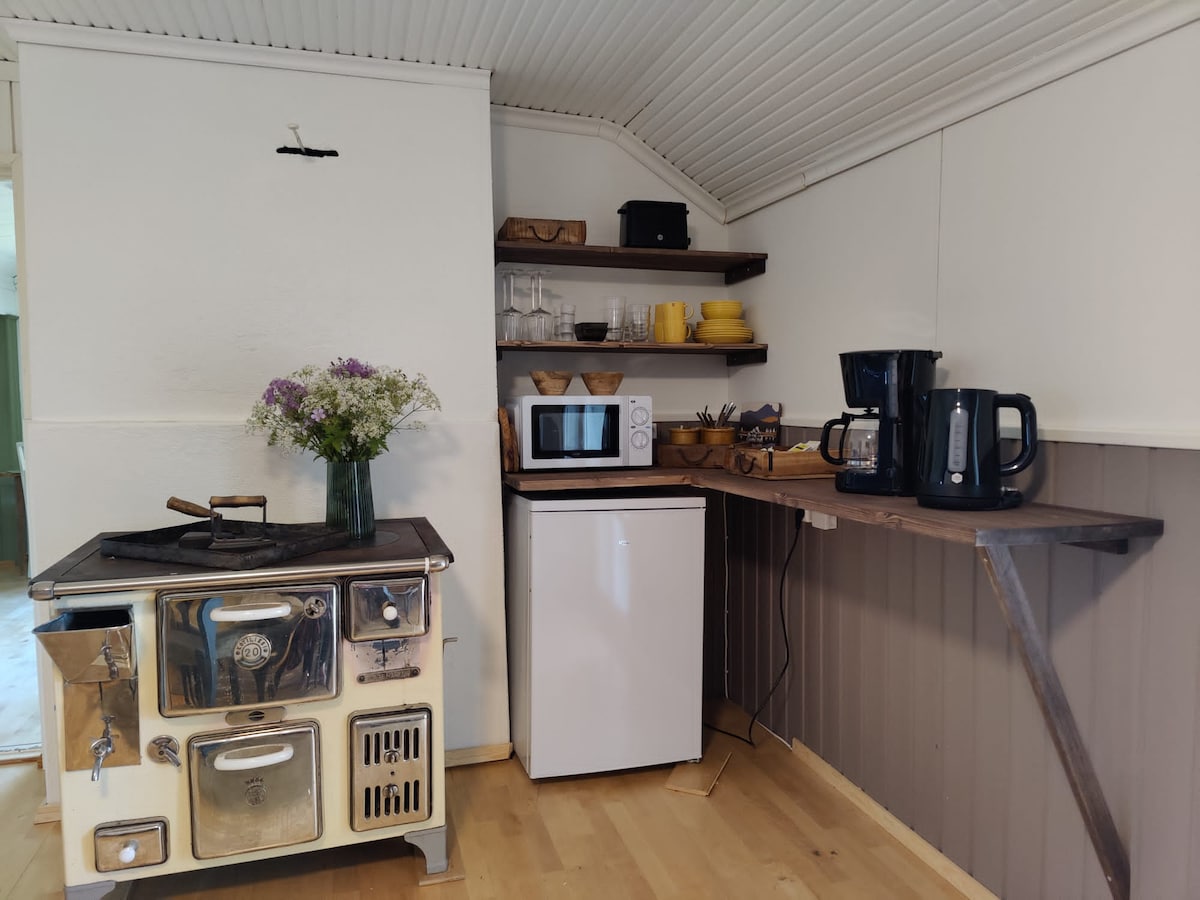 ABOUT THE DESTINATION Just renovated cottage near the highways. Grocery stores, pharmacy and pizzeria two kilometers away. Electric car charging facility. Air source heat pump FACILITIES This compact apartment sleeps two people. 140cm double bed plus a sofa for a child. (linens for an extra fee) The kitchen has a stove, air fryer, microwave, toaster, kettle, coffee maker, refrigerator and dishwasher + basic tableware. There's a washing machine in the bathroom.