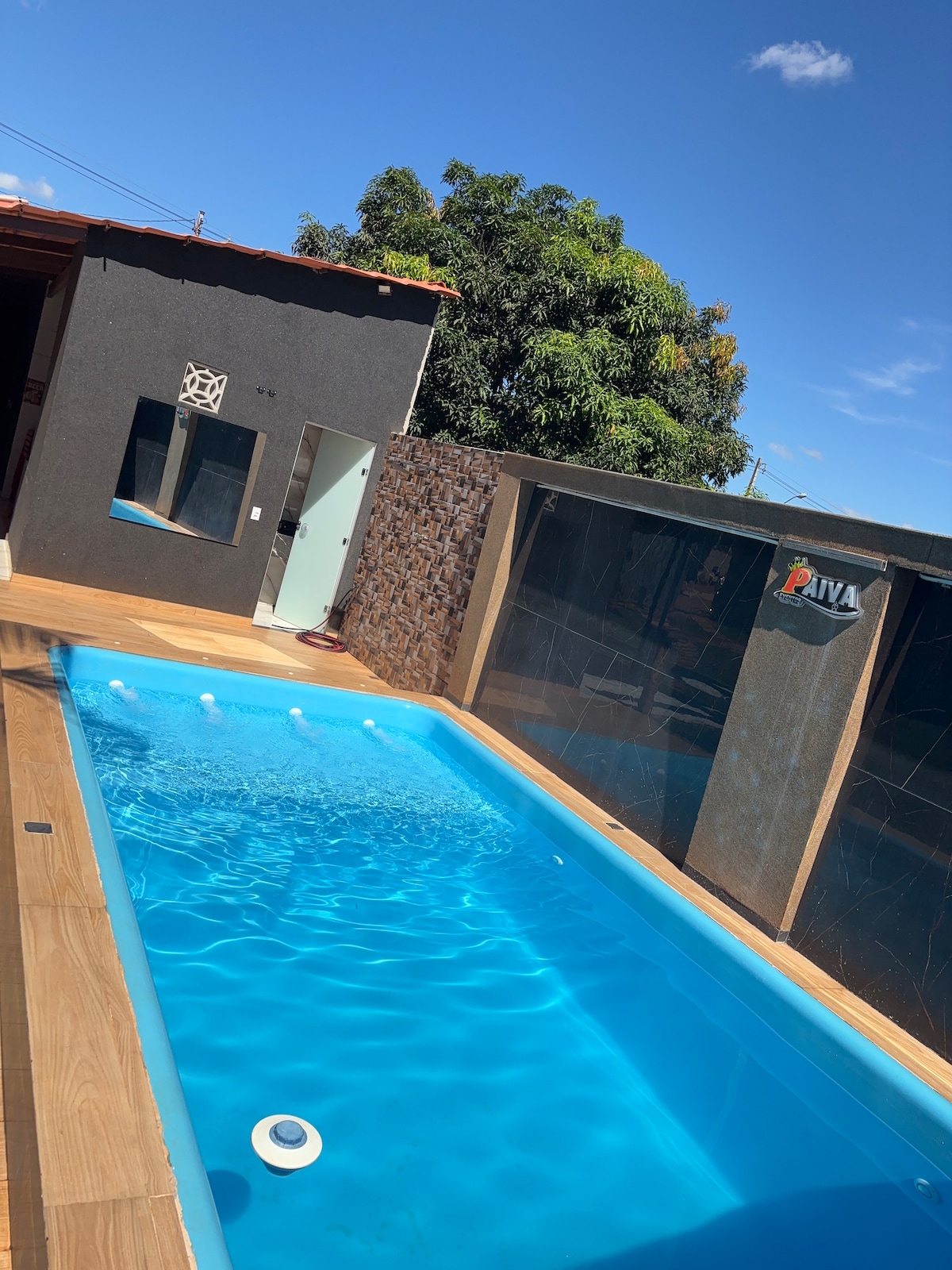 Relax with family and friends at this wonderful lakefront accommodation (RIO PRETO) DF 251, towards UNAÍ - 90 km from the center of Brasilia Cond. Paraíso do Lago, Fazenda Manga, Campo Lindo (Cristalina/GO) FAMILY ATMOSPHERE AUTOMOTIVE SOUND IS PROHIBITED 3 Bedrooms with AR CONDICIO, 3 bathrooms (1 suite with bathtub), 1 kitchen, living room, BBQ area, beds for 12 people + 3 extra mattresses 1 swimming pool with solar heating Wifi,TV42,pool,playground,vests Access lake for bathers and boats
