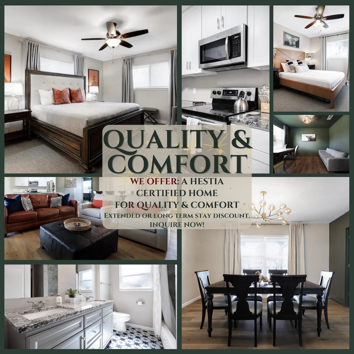 * 13 minutes to the Riverwalk | 5 minutes to SA Airport | 15 minutes to the Med. Center | 30 minutes to Sea World | 5 minutes to Morgan's Wonderland | Easy access to I-410 and Hwy 281 * 1 King ensuite | 2 Queen rooms | 1 Sofa in common area * Smart TVs * Military Discount (inquire before booking, Photo ID required) * Work from home | 300 mbps high speed WiFi + dedicated work station Send me a message at any time! ** No animals permitted under any circumstance **