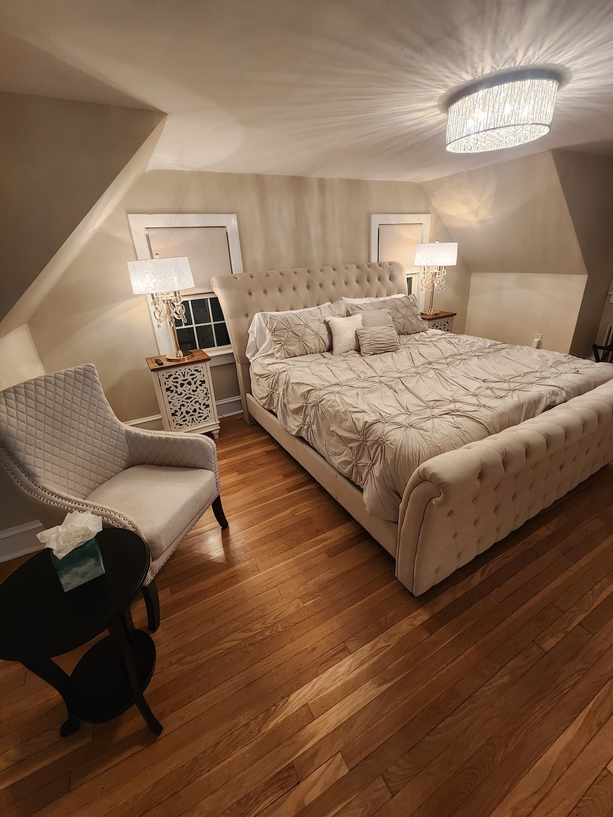 Large, beautiful twin home, designed for maximum comfort with high ceilings and ample natural light. 6 large fully furnished bedrooms, with wi-fi and internet. Located in the Historic Germantown section of Philadelphia. Close to transportation, shopping centers, and parks. Large kitchen, washer/dryer on-site, and very cozy porch to sit and enjoy the outdoors, as well as an outdoor picnic/BBQ area with hammock. There are two off-street private parking spots for each rental.