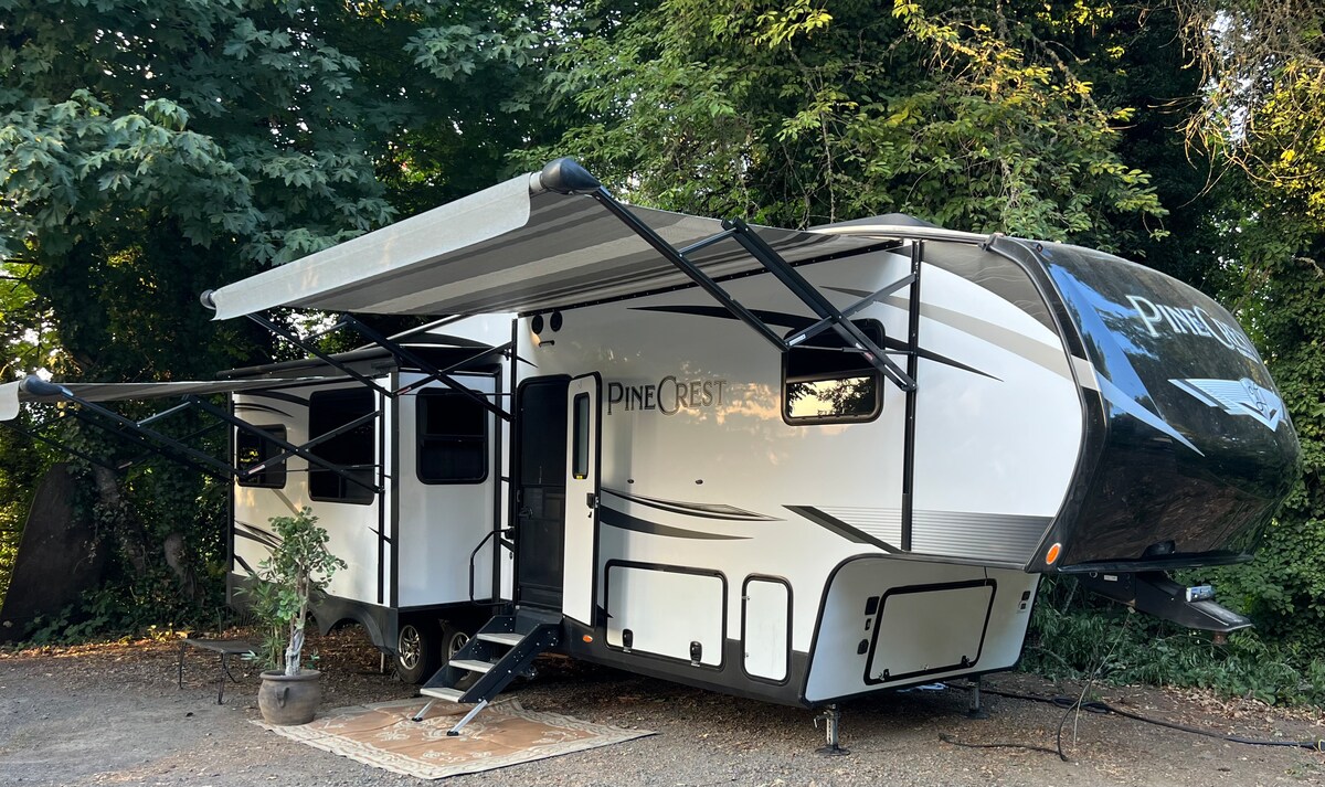 A stylish and cozy, South Eugene Guesthouse Studio. 1 mile south of the UofO campus and 3 miles south of Autzen Stadium. Ask about our Tesla Y rental and/or electric bikes to explore the city's extensive bike path system (message for availability), attend a UofO event OR enjoy this beautiful city! Come sip your morning coffee on the outdoor patio and enjoy a "secret garden" like setting. A child travel crib can be provided upon request and the electric bikes can be fitted with a toddler seat!