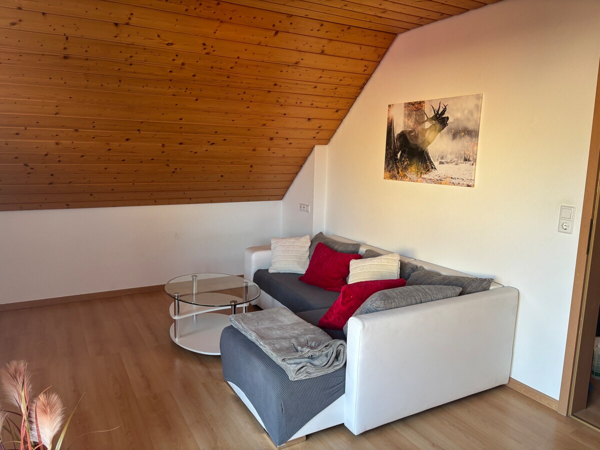 Löwenstein is located in a beautiful wine region near Lake Breitenau. On foot, you can walk in approx. 10 minutes up the mountain to the village. Here you have the Landgasthof Hohly, a general store which is open 7 days a week, a cafe with bakery, the post office and two bank branches. The next major cities are Weinsberg and Heilbronn. There is a key safe, so you can arrive at any time.