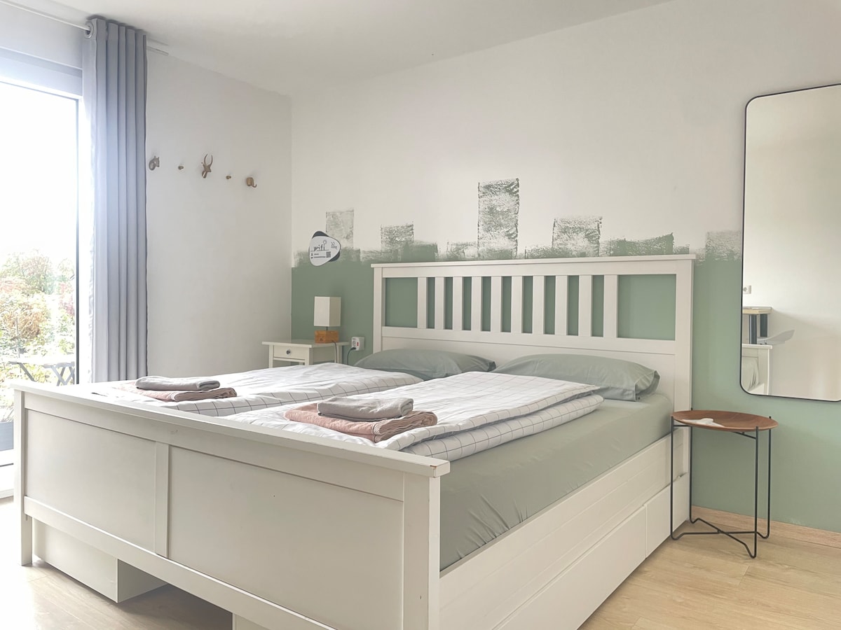With us you can relax in a lovingly furnished apartment overlooking the garden, enjoy the sun on the balcony and listen to the birds chirping. After a walk through the beautiful nature, a comfortable couch invites you to relax and watch TV and recharge at night in the cozy wide double bed. In the well-equipped kitchen, you can enjoy your coffee and satisfy your hunger. We're excited to welcome you.