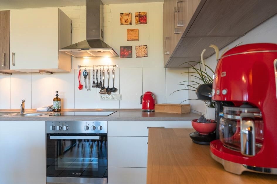 Traveling with a wheelchair or handicap – no problem here? When furnishing our apartment, we have made a special effort to provide a high level of comfort for people with mobility issues. The apartment is at ground level and is easy to cross with a wheelchair and easily accessible directly from the covered carport. A spacious layout with extra-wide doors and a barrier-free kitchen with a sink and electric stove awaits you.