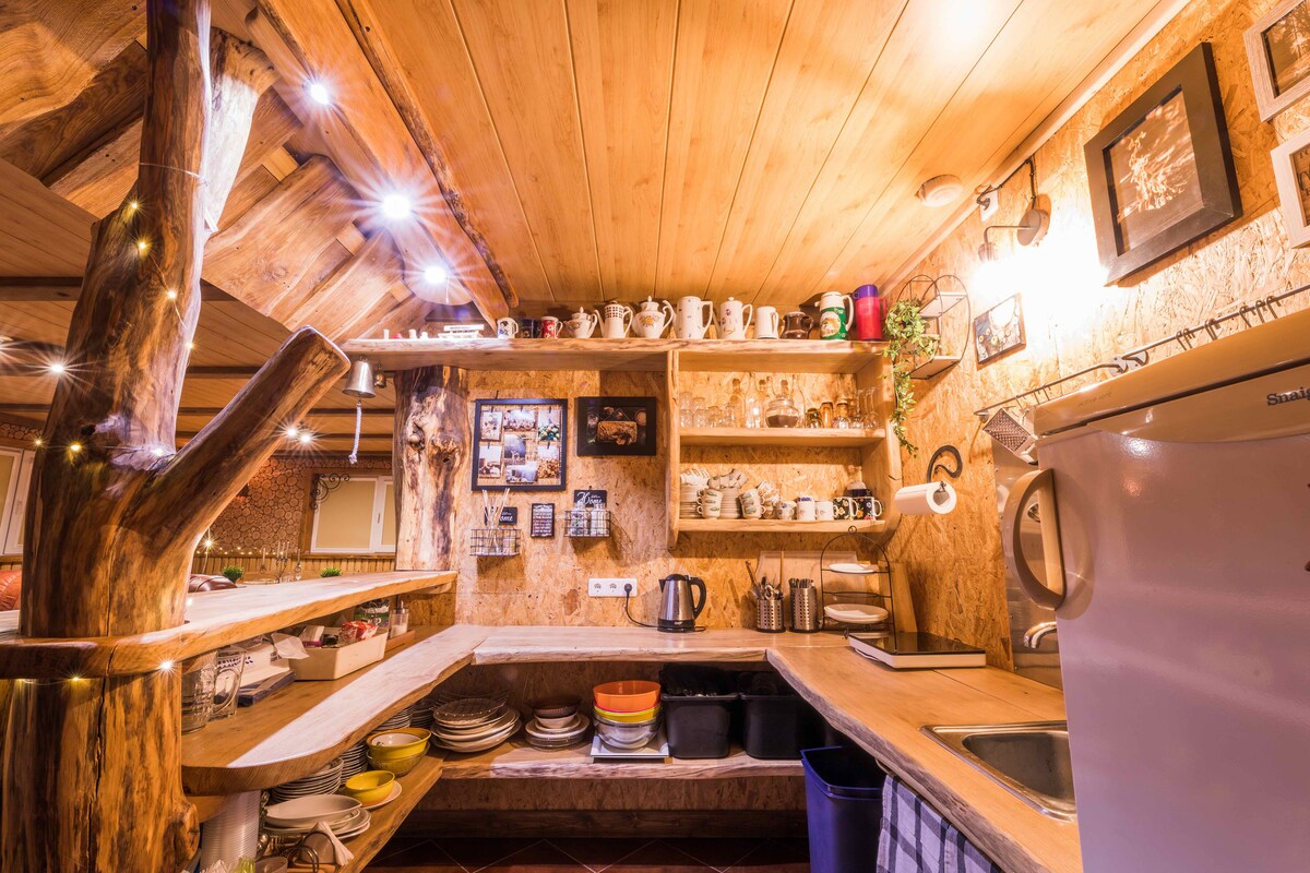 Šiame psichodeliškai jaukiame, namelyje praleistas laikas bus nepamirštamas. Namelis suprojektuotas taip, kad viskas būtų paprasta ir patogu. Miegosite virš didžiulio apvalaus stoglangio ir kvėpuosite šviežiu oru. Namelis pastatytas iš šiaudų ir molio dėl ko vidinis klimatas labai geras. Maudysitės didžiuliame duše, kuriame be vargo tilpsite dviese. Terasoje paruošta pirtis ir ledo kubilas, sodelyje daugybė vaisių ir uogų