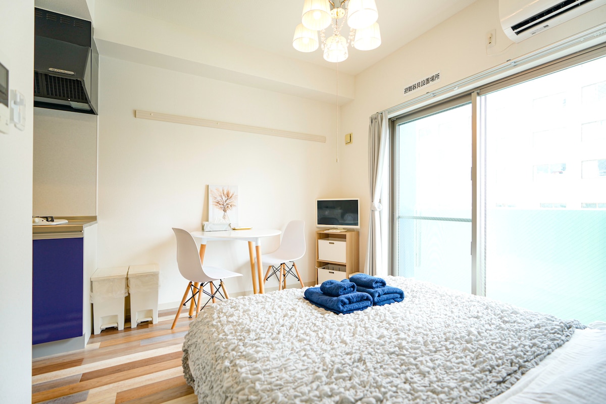 5-minute walk to Monorail Makishi Station The apartment was completed in December 2021 and the room is very clean. The room size is about 18 square meters and is not large, but there is Wi-Fi, a mini kitchen, a shower room, a toilet with a washlet function, and a double bed, and it is equipped with basic furniture and appliances, so two people can have a very comfortable stay♪ It is suitable for both short-term and long-term stays. The room is on the 5th floor and is accessible by elevator. It is a 5-minute walk to the main street, Kokusai Dori. There are many restaurants and convenience stores within a 5-minute walk from the apartment, making it a very good location. The monorail Makishi station is a 5-minute walk away, and there is good access from the airport♪ It is located 1 km from Tomari Port, making it convenient to get to the popular Wakashiki Island. We have self check-in. We'll email you check-in information a few days before your stay.