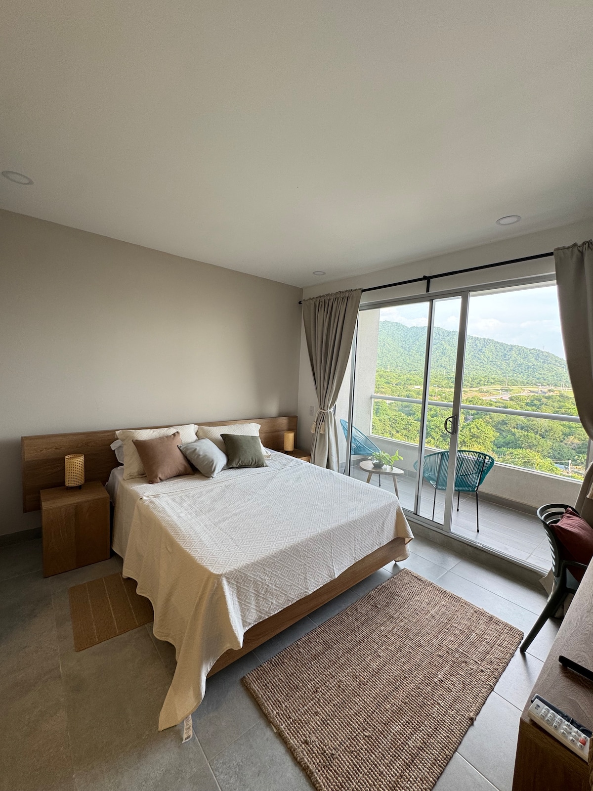 Tierra Apartment - Inspired by the Sierra, elevated above the Sea. 11th floor with unique views of the Caribbean and the mountains. Tierra combines local design, natural materials and Samarian art. Relax in a hammock, cook at home, or enjoy the condominium's restaurant. Swimming pools, jacuzzis, direct beach access, parking, and a cart for transportation and luggage. Queen bed, sofa bed, air conditioning, smart TV and Wi-Fi. A haven that connects comfort, landscape and local culture in Santa Marta.