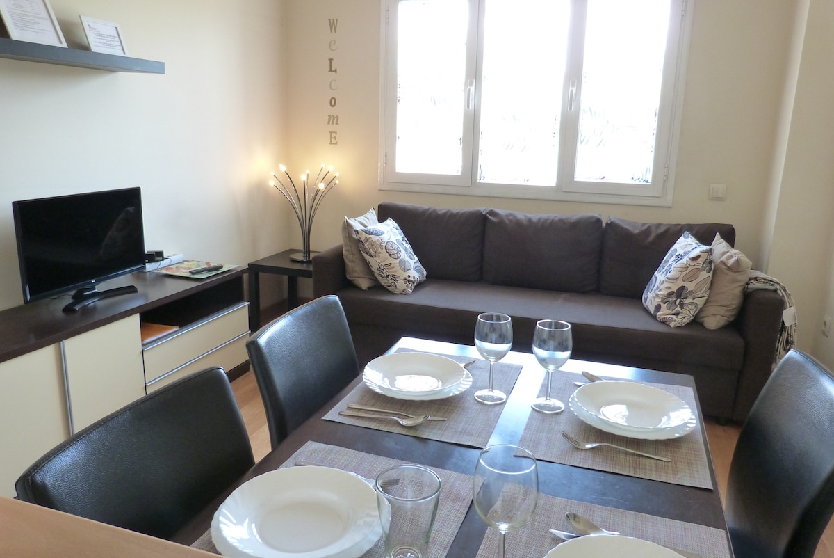 Pequeño y cómodo apartamento tipo Estudio de 24mts, perfectamente equipado con todos los elementos necesarios para descansar y disfrutar de la ciudad. Cuenta con cama de matrimonio 150cm, baño privado, Smart-TV y WIFI, cocina equipada con mesa, sillas y sillones para descansar. Posibilidad de garaje por 10€/día (bajo disponibilidad y reserva previa) Capacidad máx. 2 personas. Posibilidad de cuna y cama supletoria (solicitar información).