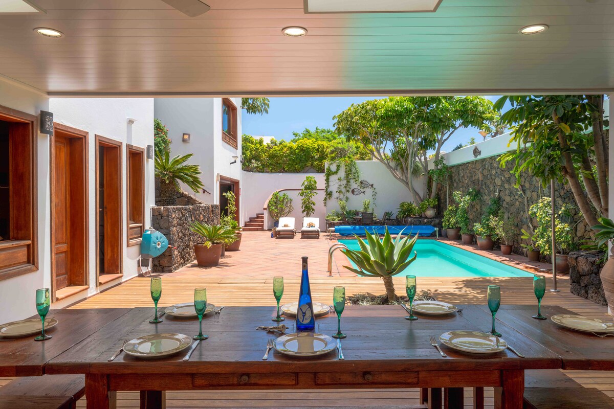 La Casa del Estanque es perfecta para los amantes de la belleza y la calma. Bungalow en un complejo tranquilo a 5 minutos del mar con pequeña piscina privada y climatizada, para uso exclusivo de mis huéspedes, jardín privado y aparcamiento dentro del complejo y AC. Cuenta con gran piscina comunitaria y acceso directo a la avenida y a playas Diseñado por artistas lanzaroteñas con todo lujo de detalles para unas vacaciones únicas rodeados de arte en cada una de las estancias. Adults Only