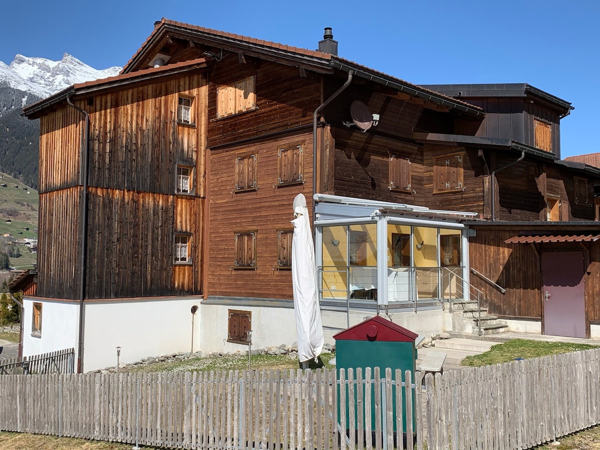 Casa Pistur: over 200 m²; over 230 years old; top location; continuously and lovingly modernized. Large modern kitchen with sitting area, well-equipped bathrooms, spacious sauna with relaxation corner, very large terrace (60 m²); Weber grill; granite table and benches, TV/surround sound, fitness equipment, LAN/WLAN/cable TV. Two soapstone stoves; a lot of space in 2 lounges. 4 cozy bedrooms with 9 beds; 2 showers/toilets + one toilet; several furnished office workstations and quiet/game corners.