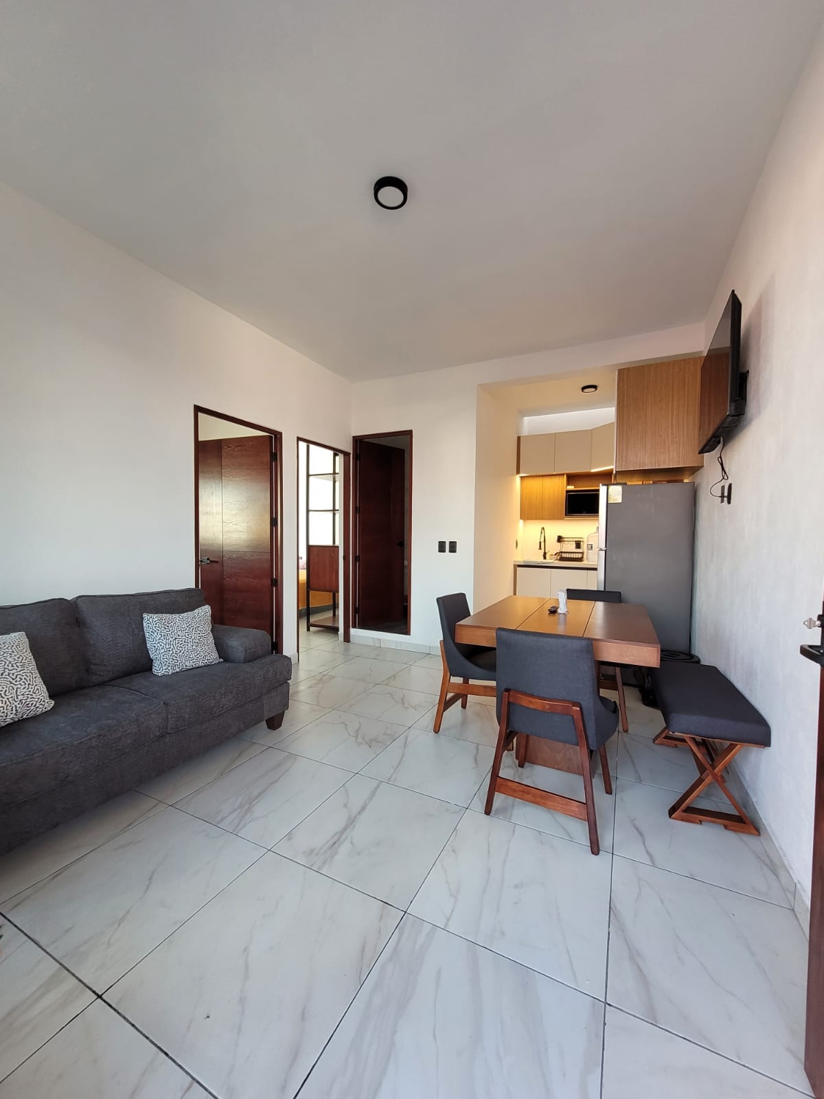 Well located apartment for up to 4 people, it has everything you need, YES we invoice It is a new construction, the project is starting, the location is excellent because one block away is the "Pista vieja" or Av. Lázaro Cárdenas, 5 min from the Glorieta de la Latino, there is an oxxo a block and a half from the place, easy to access by vehicle or public transport Everything is new, feel ready to open this new space built for you To access, you must climb stairs