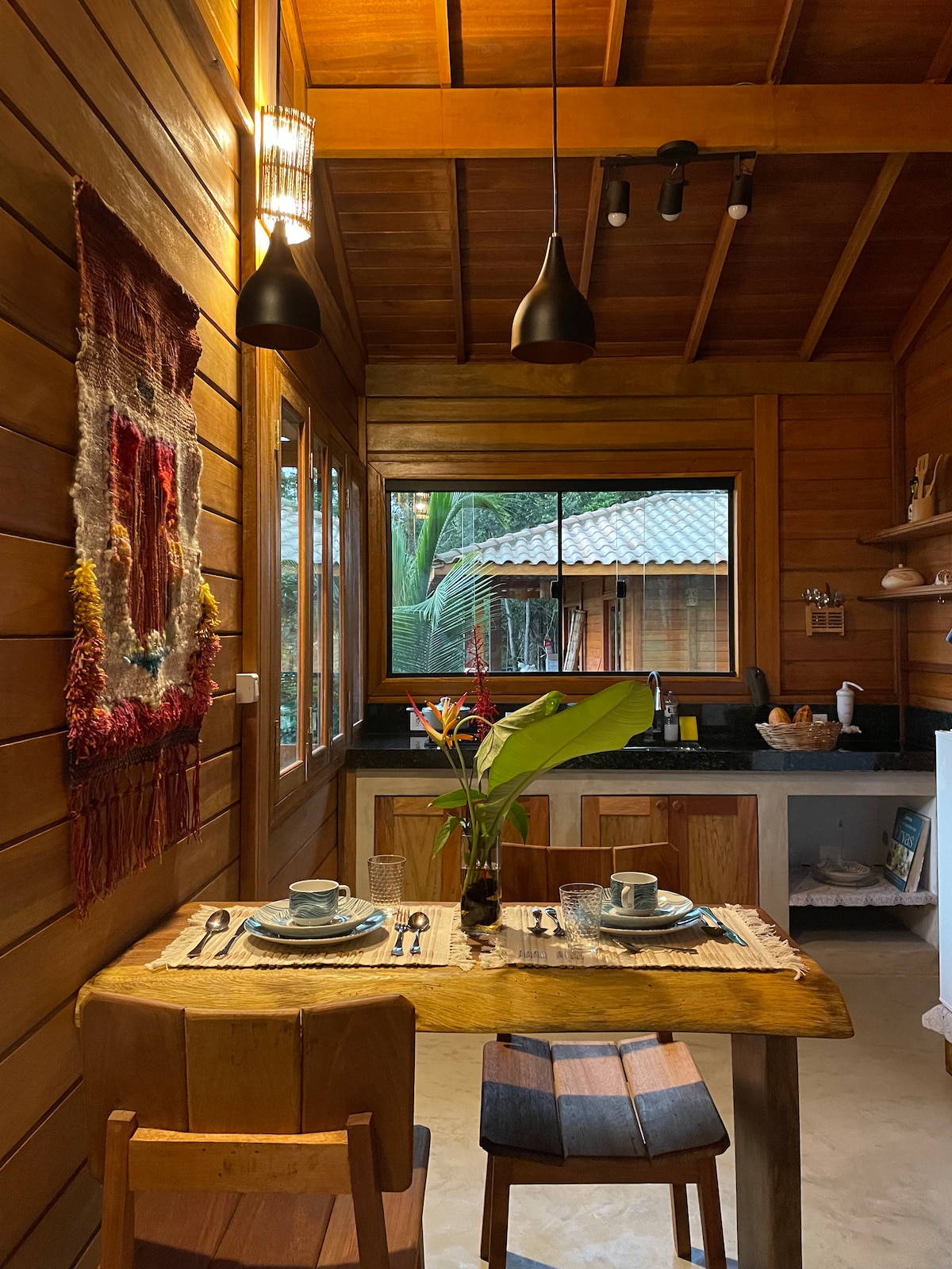Chalé Caju is a new accommodation located between the Atlantic forest and the edge of the stunning Serra Grande beach. The accommodation consists of a spacious common room with a full kitchen, hammocks, sofas and a large garden with coconut trees. From here you have a special view of the sea and the sunrise. It's our closest chalet to the beach. Here, you wake up with your feet in the sand. To make your stay even more comfortable, you can request breakfast during your stay.