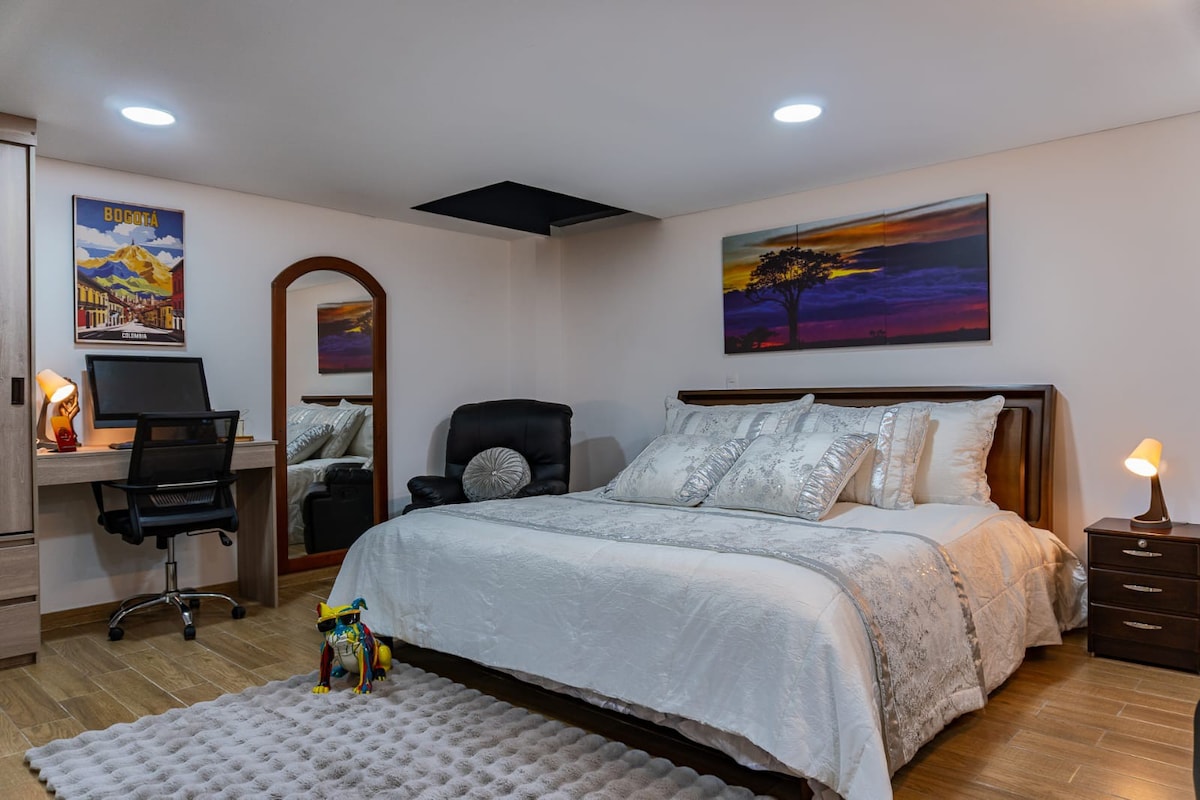 NEW & Modern PH LOFT, in the best, estrategic, safest & well located neighborhood in Bogotá, CHICO, full of unique experiences (Bed CINEMA, SUPER FAST WIFI 500MG, panoramic amazing view, Juan Valdez coffee machine, Colombian coffe station, bed home office, quality mattress, fresh/fluffy towels, special traditional Colombian amenities, BBQ Terrace). Easy transportation. Next to the most exclusive Malls, Restaurants, Parks, Pubs, nightclubs and Supermarkets of the city
