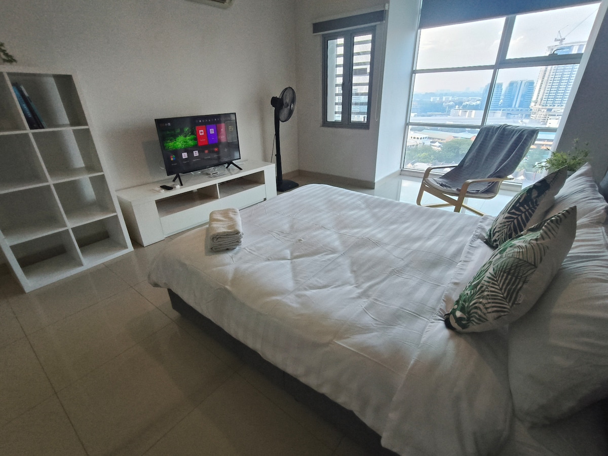 Welcome to our serene minimalist studio, where simplicity meets sophistication in a space designed for comfort and tranquillity. Ideal for solo travellers, couples or business travellers seeking a peaceful urban escape, our studio offers a sanctuary away from the hustle and bustle of city life, while still providing easy access to all the amenities and attractions including Sunway Pyramid & Sunway Lagoon Theme Park just away 15 minutes' drive.