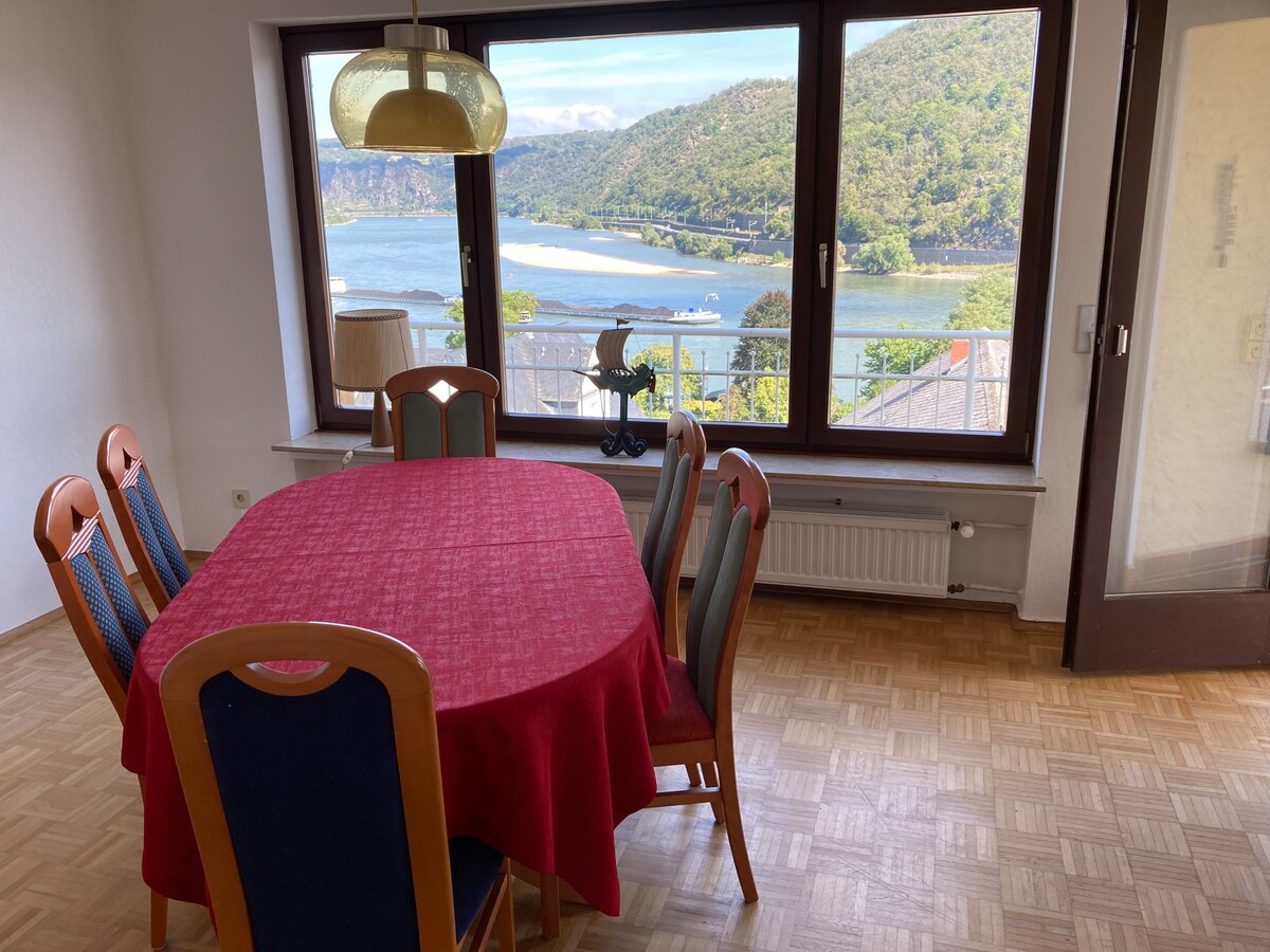 Herzlich Willkommen am Fuße der Loreley, direkt am Rhein! Siebzig Quadratmeter zum Wohlfühlen, Entspannen und Genießen! In einem Haus von 1900 wurde diese Wohnung neu renoviert, sowie liebevoll und modern eingerichtet. Über den angrenzenden Balkon besteht ein direkter Blick auf den Rhein, die Burg Maus und die Burg Rheinfels. Die Küche, sowie das Bad und Gäste-WC sind voll ausgestattet. Im Wohnzimmer befindet sich neben einer Schlafcouch auch ein Smart-TV.