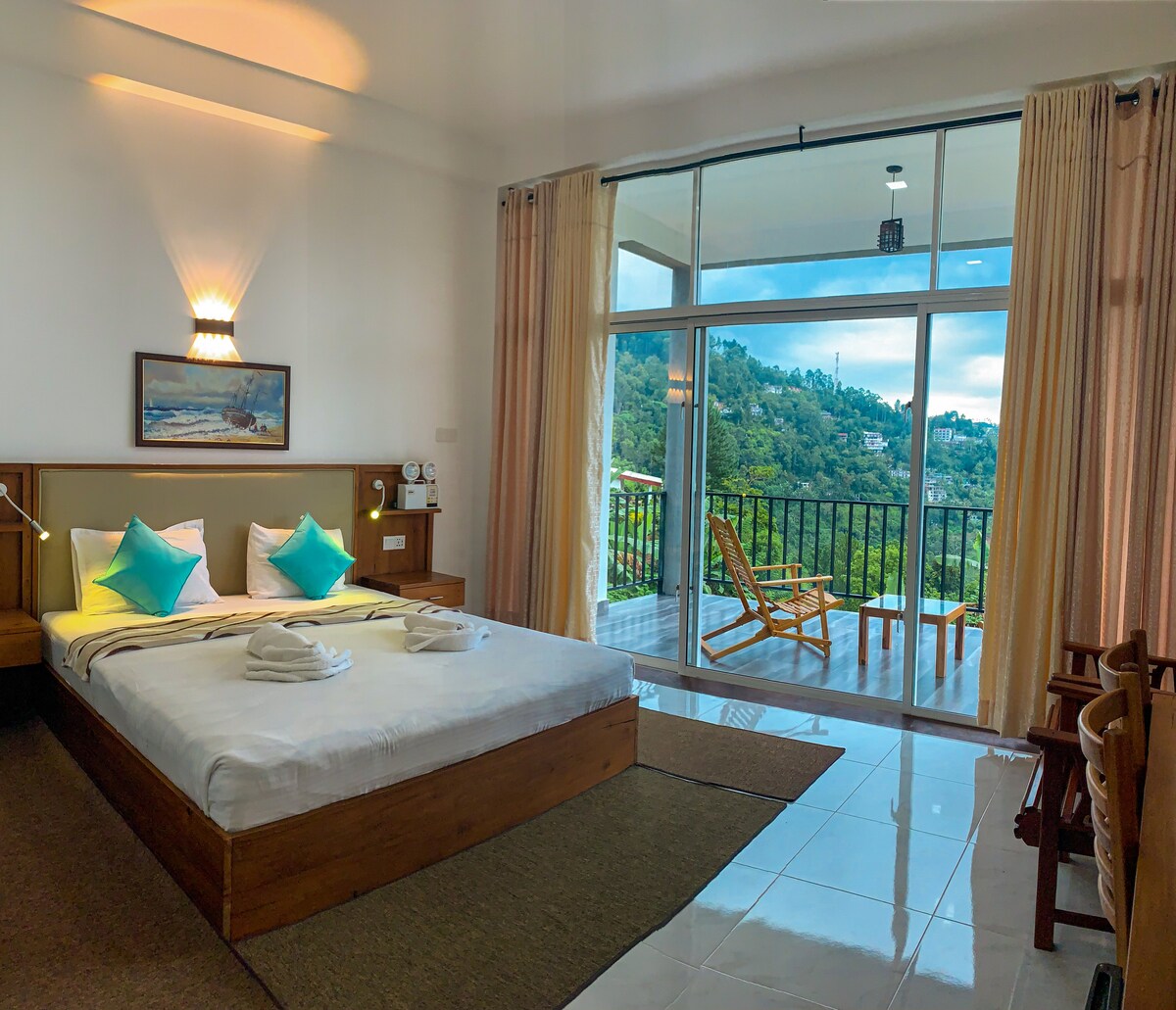 Spacious double room with living area and balcony. Elite Ella offers a cozy, modern space to relax and enjoy nature. Wake up to stunning scenery and make your stay unforgettable ! 0.9 km from Ella Town.