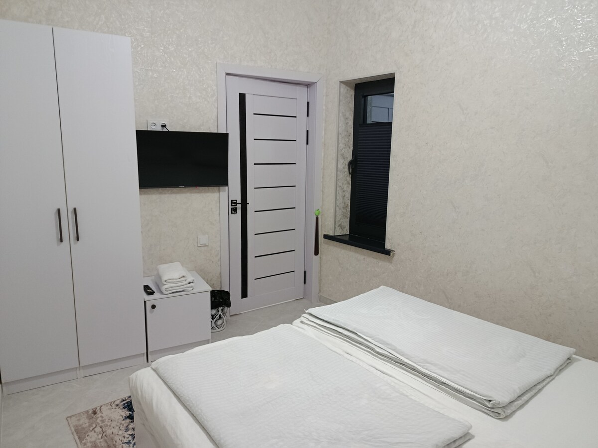 Clean, comfortable room with all amenities. Very hospitable family. It is possible to cook both yourself and use the services of the owner. Nearby there are many sightseeing places and food. It is about 3 km to Registan square.