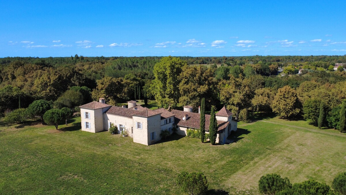 Charming country house, 12 people, near Bazas (15 mins), Langon (15 mins), Villandraut (5 mins) Bordeaux (1 hour drive), South West, France. Relax away from the stress of the city at this peaceful place to stay. Ideal for recharging your batteries with friends or family, organizing a stay with dedicated space: remote work, seminar, retreat... Swimming pool, park, century-old redwoods, bamboo grove, access to the stream and laundry room. View of the collegiate church and its park. Two nights minimum.