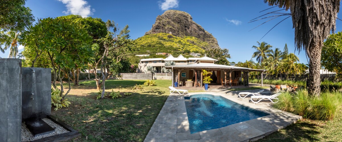 Nestled in a huge garden of about 4000m², stands a 3 bedroom retreat, onlooking magnificent views on the mountain, hills and sugar cane fields. Equipped with a covered patio, you would want to sit there and have breakfast in the early morning within the chants of the tropical birds. At night, away from the dense region, you shall be blanketed by the stars as you sip green tea and digest eventful days lived on the island.
