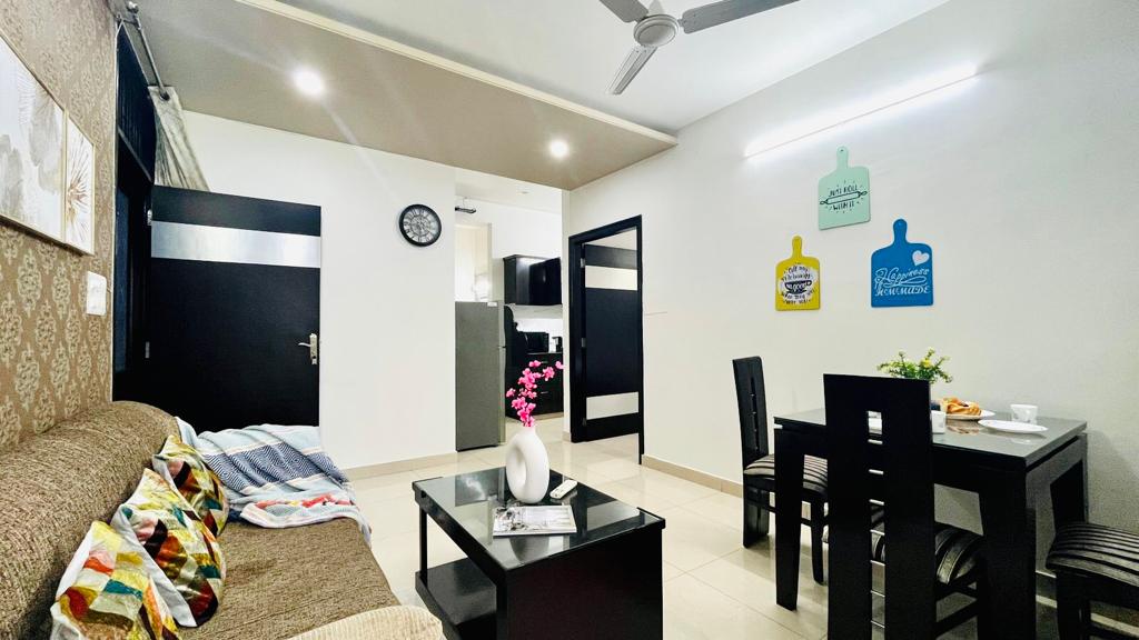 Enjoy a stylish experience at this centrally-located place. Bright n Spacious newly built modern service Apartment with beautiful decor, ✅ METRO STATION 600 meter ⭐️ ACCESS TO ROOFTOP POOL 7 AM TO 10 AM 4PMTO 7 PM ⭐️ All transport are easily available at the location. ⭐️ Restaurants, Shop, Salon, Shopping are available in the property. ⭐️ Fully stocked pantry with utensils ⭐️ It's 20 min drive to the airport & 10 min drive the Railway Stat