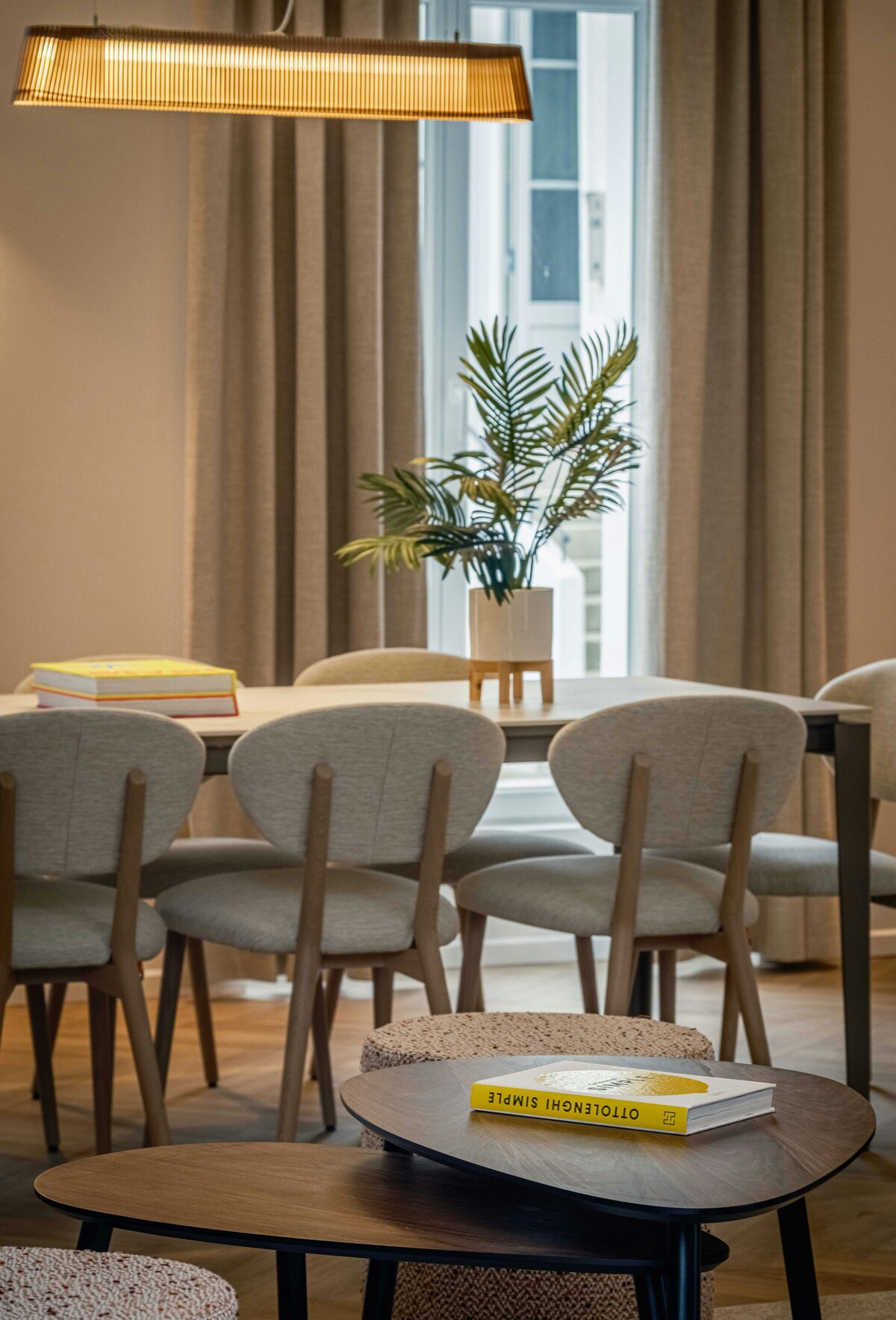 This 80m² apartment gives you access to a small balcony. Very bright, this apartment also offers a living room with dining area and high-end sofa bed as well as a fully equipped kitchen. Two separate bedrooms have a king size bed and a smart TV. A third bedroom offers three twin beds for maximum comfort. A high-speed WIFI connection is also at your disposal.