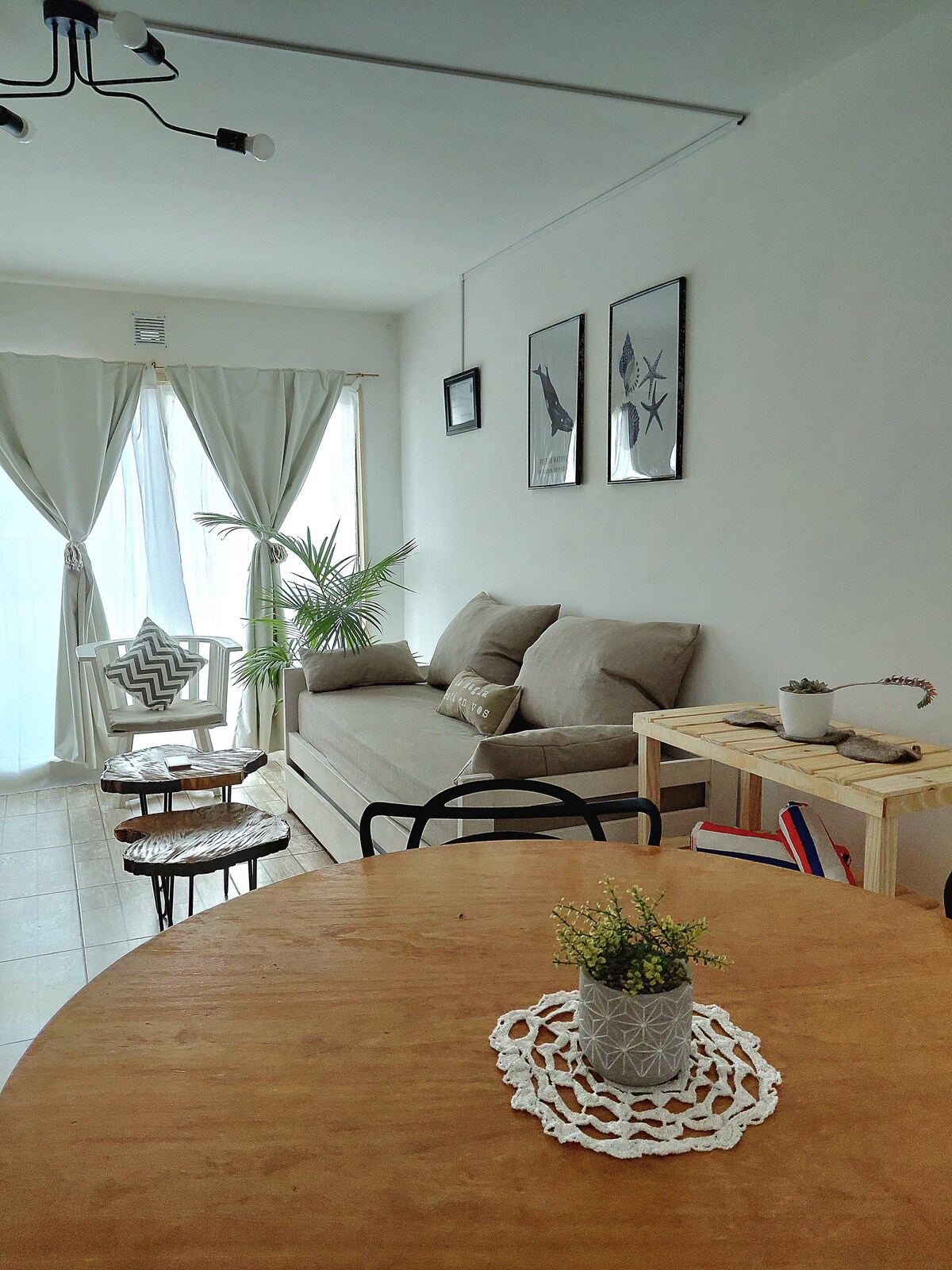 Apartment with private and enclosed patio in the best area of Puerto Madryn, one block from the sea and three blocks from downtown Puerto Madryn. It has 1 bedroom with a double bed and in the dining room a trundle bed for 1 and a half people. It also has a patio with a grill so you can enjoy a barbecue after a long day at the beach or going to see whales on the coast.