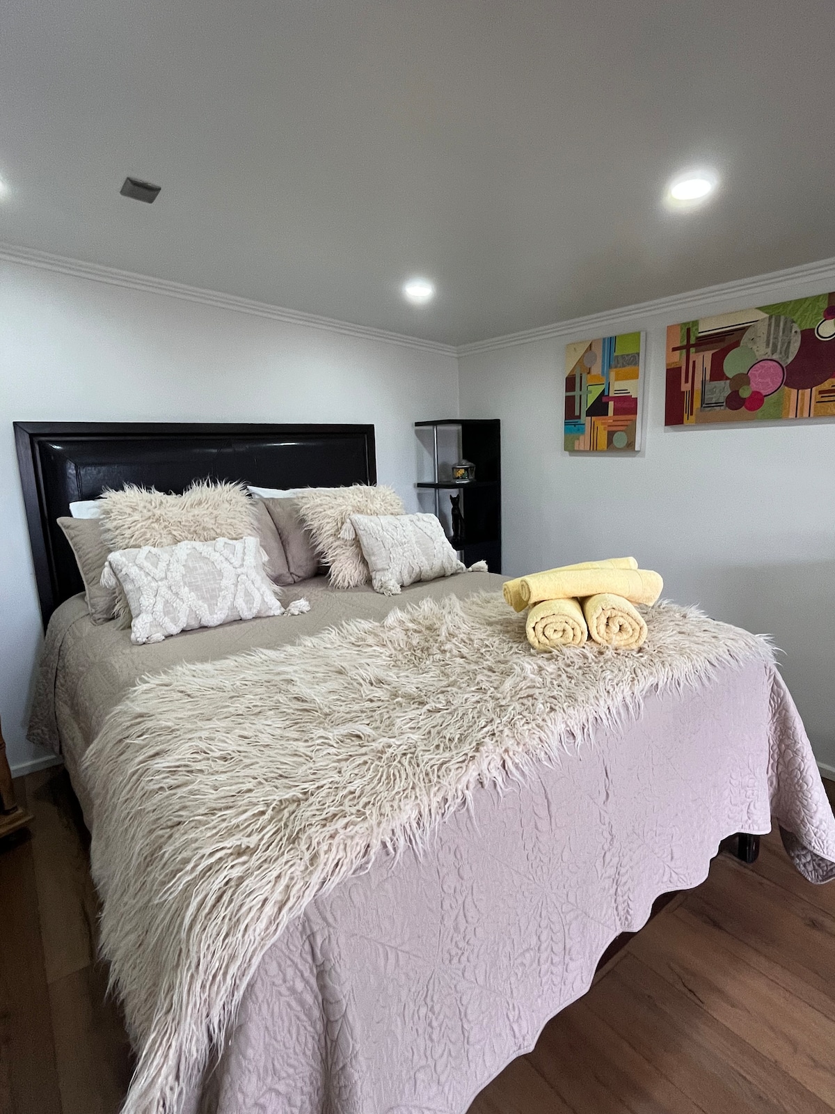 Te esperamos con una bella cabaña de un ambiente, con cocina equipada y baño completo, tiene cama 2 plazas, smart TV, comedor y sillón. Puedes moverte en los horarios que te acomoden, pues la entrada es independiente y disponemos de estacionamiento . Además cuenta con una hermosa terraza y patio “toda la magia del sur". Ubicada a 10' del centro y 15 de la UACH, con locomoción colectiva a media cuadra. Ven a disfrutar de una agradable y cómoda estadía, acá te recibiremos con todo el newen