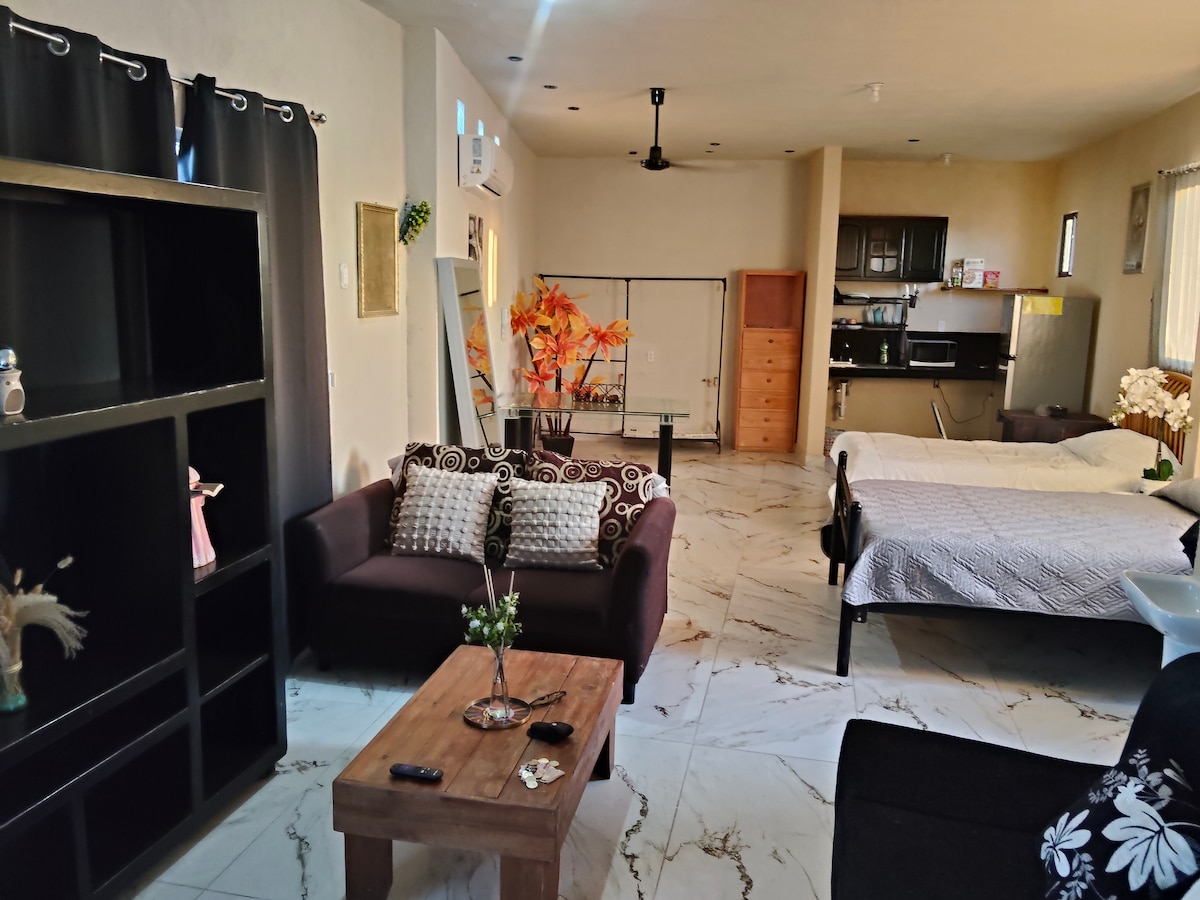Complete apartment with 1 bedroom 10 minutes from Mariano Escobedo International Airport, 10 minutes from downtown Apodaca, the room has its own bathroom and closet. The apartment is on the third floor, so you have to climb stairs. In the living room there is a sofa bed and television, it has an equipped kitchen, the only thing that is shared is the laundry area on the ground floor. It is a private neighborhood, so you need a code to enter the subdivision, it is very safe and quiet,